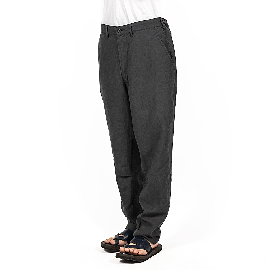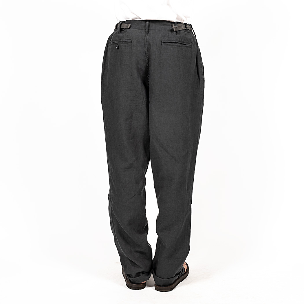 よく、ウェストのバックルがあっても滑ってしまい大して使い物にならないのがありますが、WORKERS のFWP Trousers は大丈夫です。しっかり止まる、そしてゆるめるのも簡単。バックルのテープが通る巾・ テープ表面の摩擦がばっちり合っているからです。ベルト無しでもしっかりウェストがしまります。