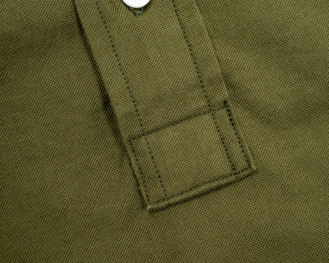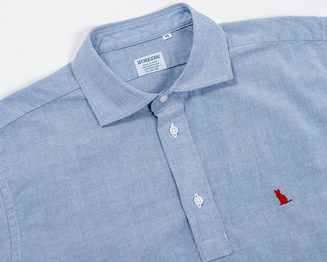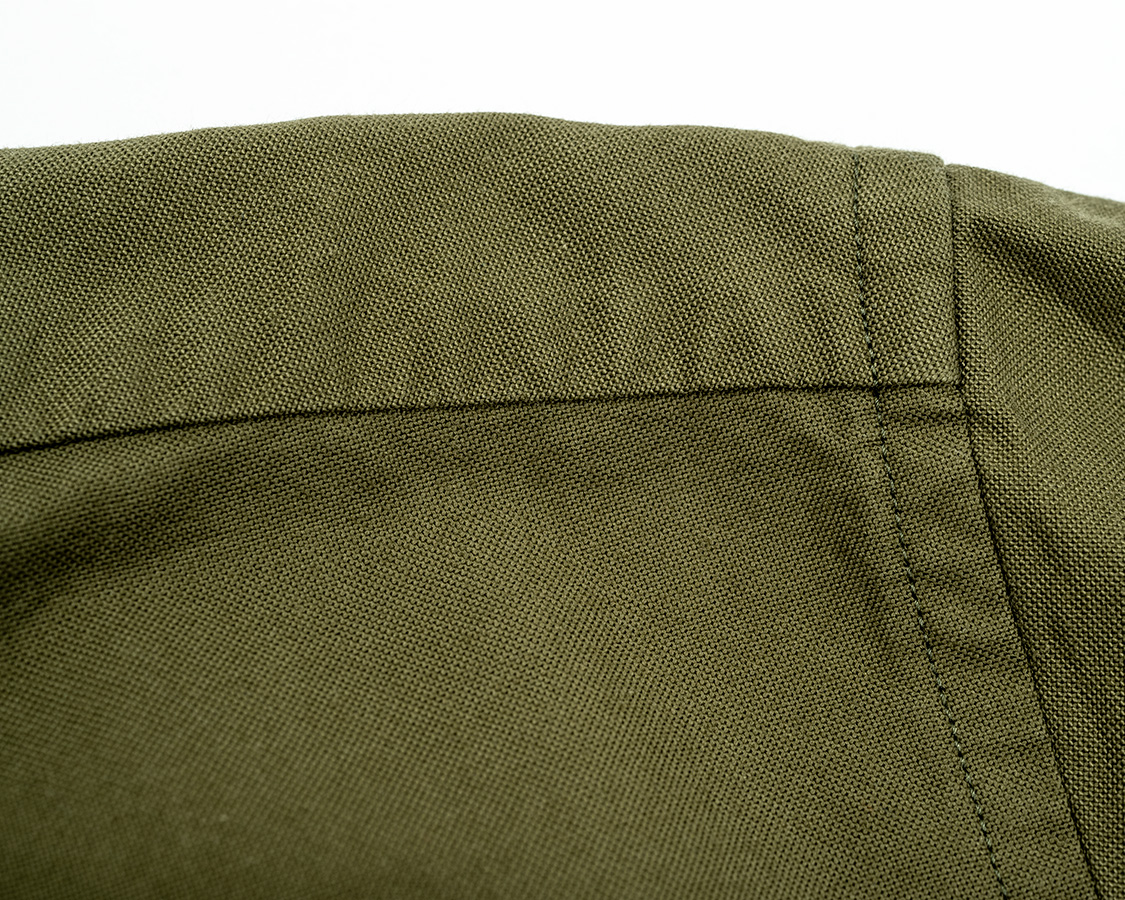 肩はステッチなし、袖ぐりはチェーンステッチの折フセ。このあたりは、WORKERSのボタンダウンで定番の、綺麗な縫い方。