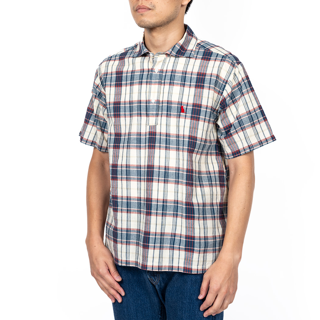 マドラスは本来のポロシャツではまずありえないだろう組み合わせ。 半袖プルオーバー、今まではボタンダウンばかりだったのでそれとは違う雰囲気になったのではないでしょうか?