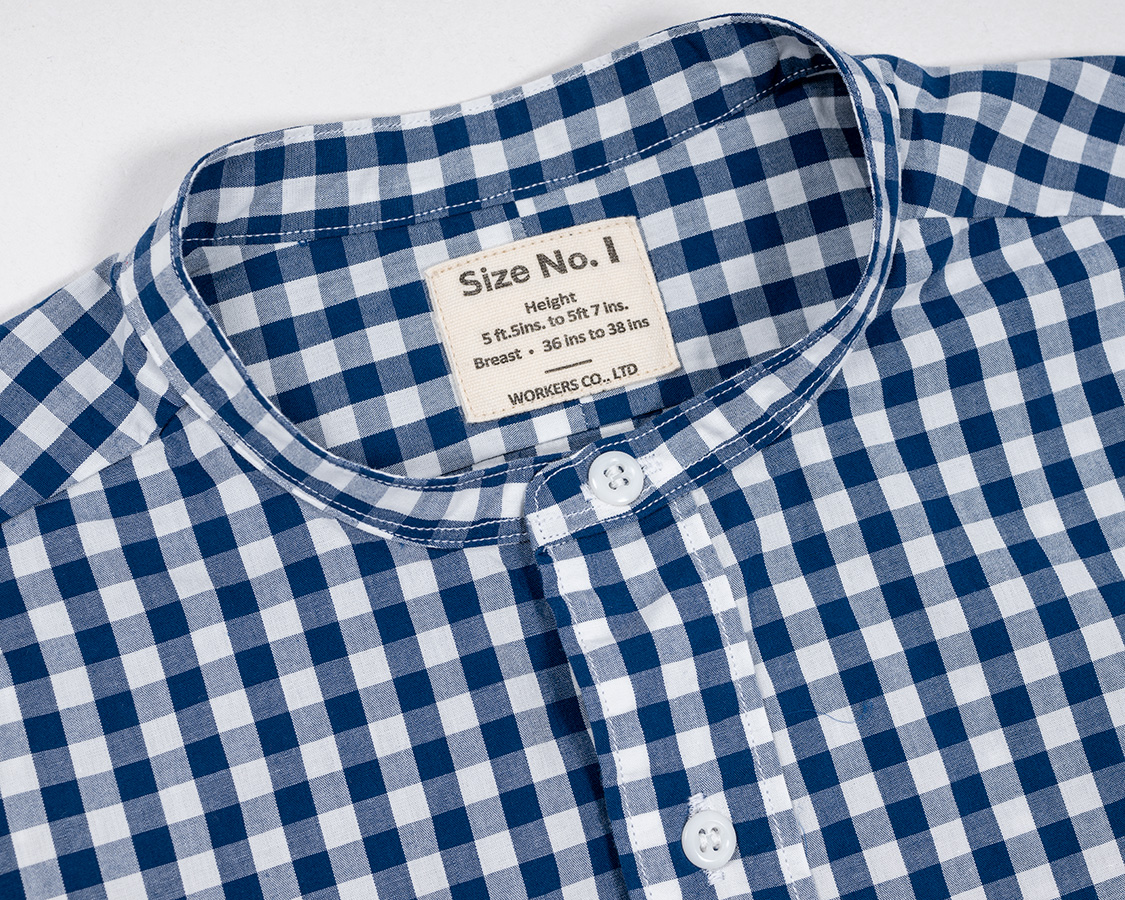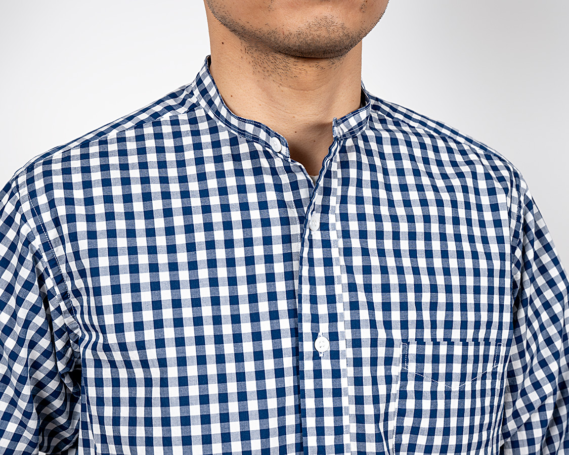 Band Collar Shirt, Gingham Poplin |