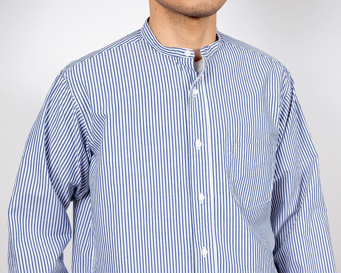 Band Collar Shirt, Stripe Poplin |