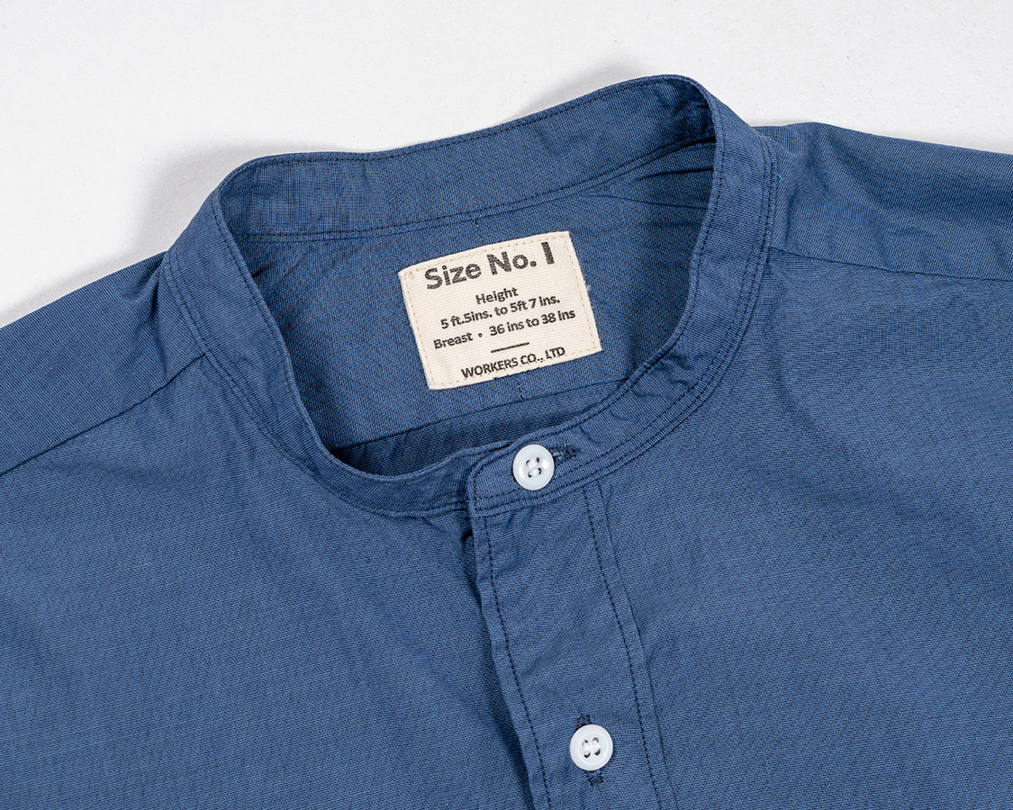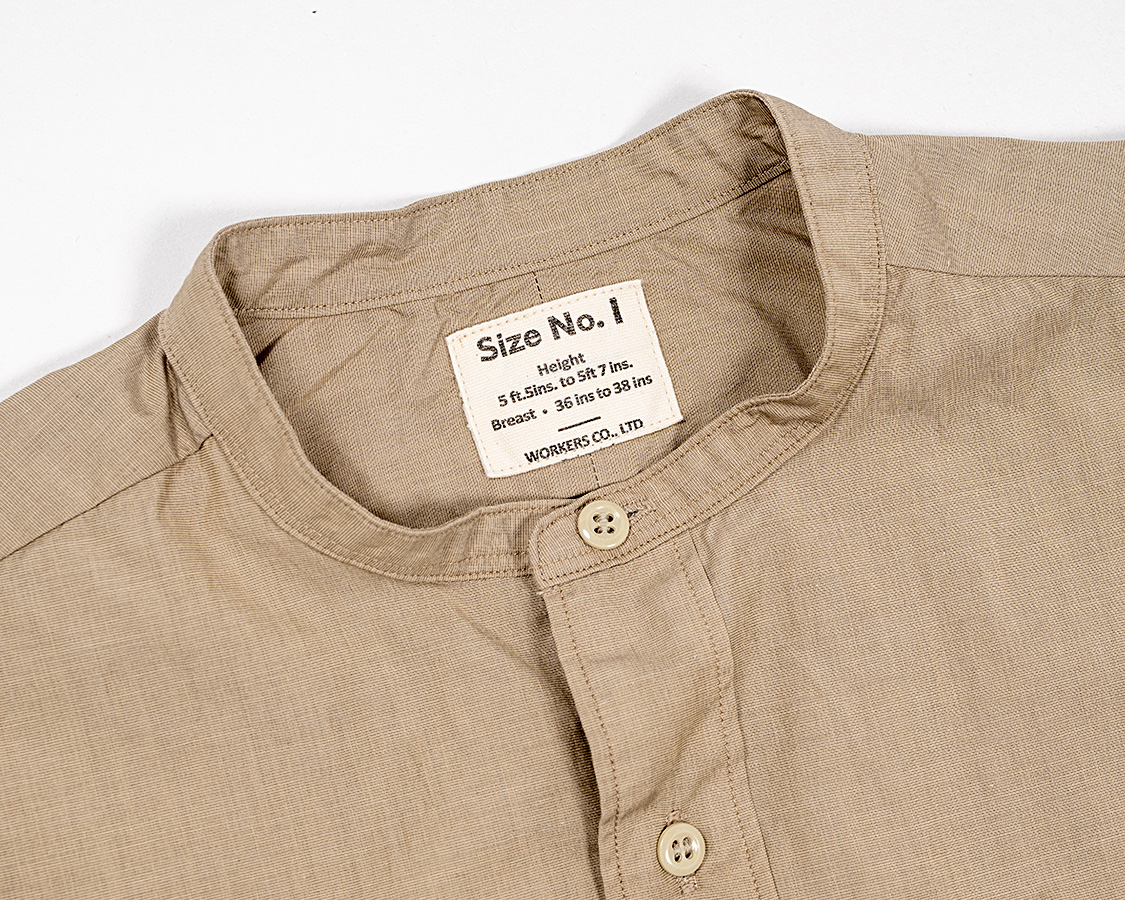 WORKERSのバンドカラー、襟型がいくつかあり今回のものはイギリスミリタリーらしきシャツを参考に型紙をひいたもの。
