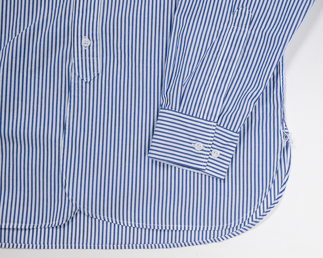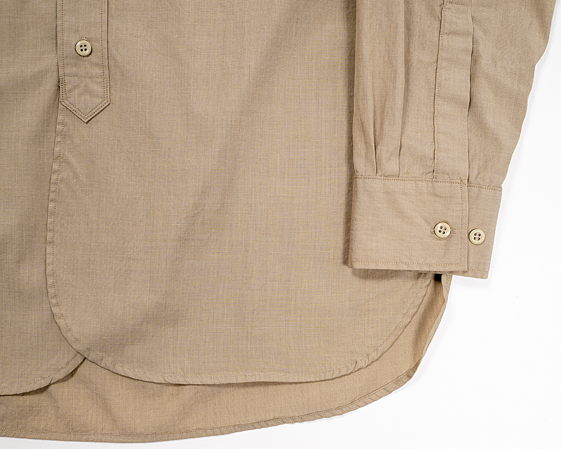 フロント下端は左右重なりのある丸みのある仕様。クラシックなシャツではよく見られる仕様。