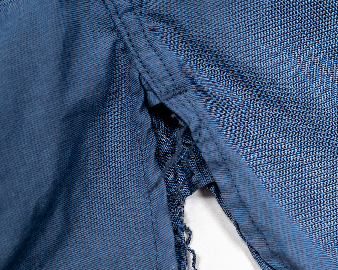 環縫いが残り、通称「カラ環」になります。その上部分はカンヌキで補強。カラ環は切ってしまってもOKです。