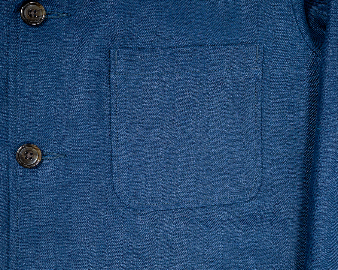 胸ポケット。裏地をつけてひっくり返し、身頃に少しゆとりを持って取り付け。