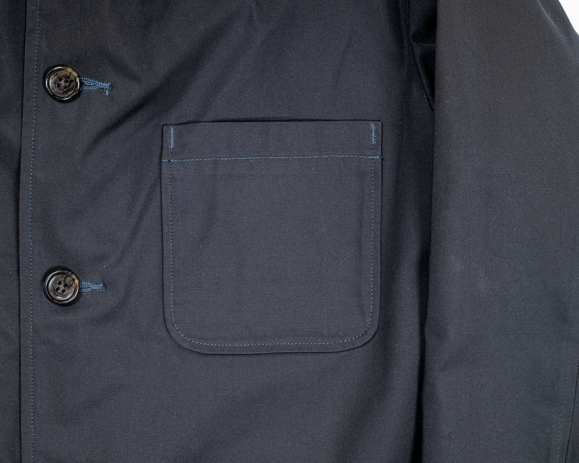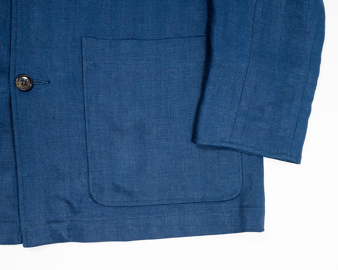 ポケットの淵が浮いているので、ポケットが立体的に見えるので私は好きな仕様です。地縫いしてひっくり返すのでひと手間増えてしまう&返しのうまい・下手が出ます。フォレスティエールを縫ってくれる工場さんはアイロンワークがうまい。工場に行っても、ミシンのド~~~~という音より、アイロンのシュ・シュっとスチームの音のほうが多くしているぐらいです。