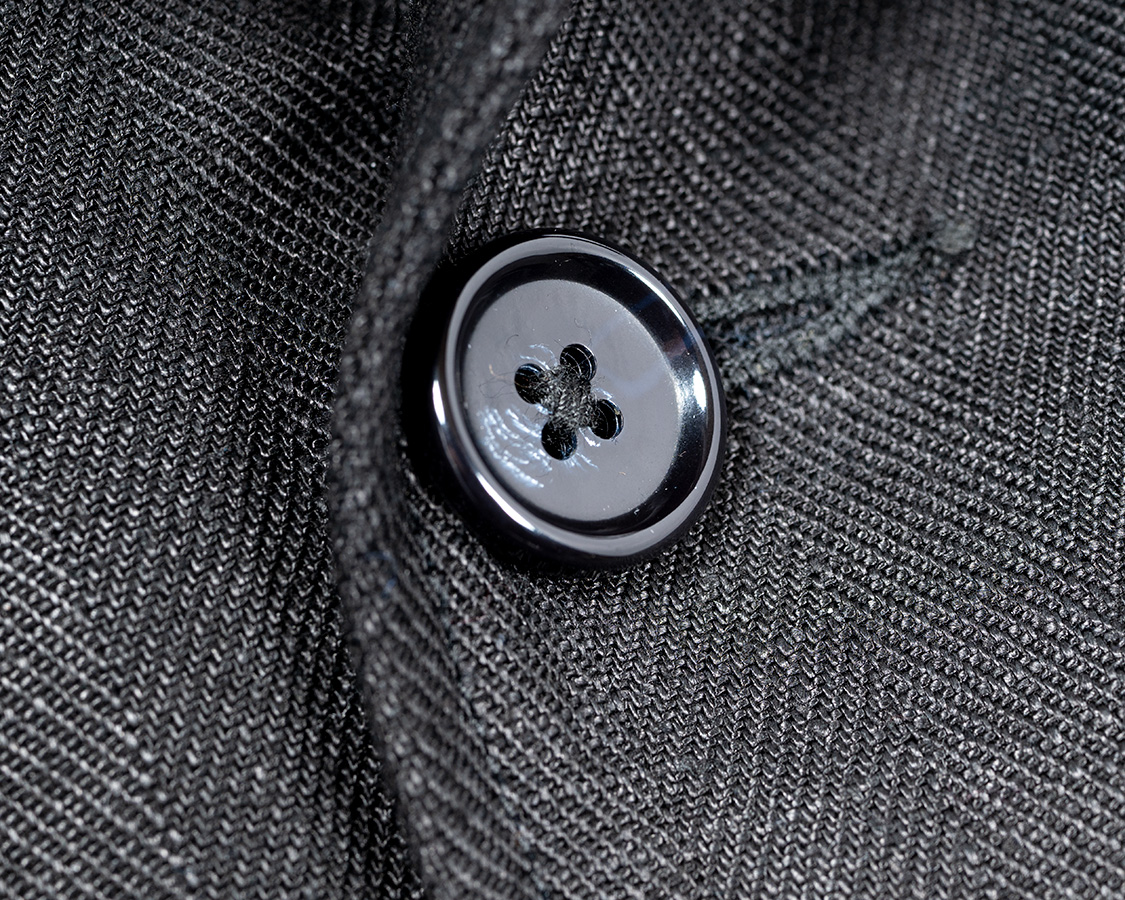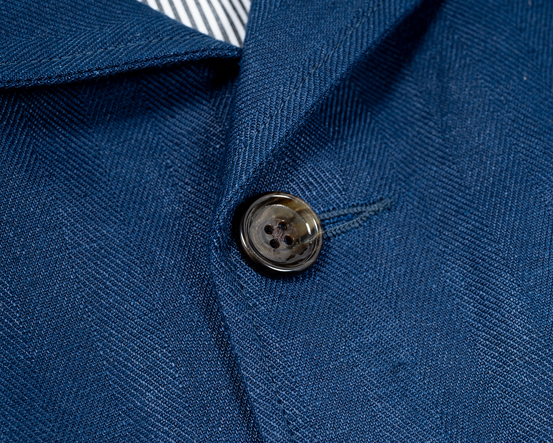 ボタンは水牛「風」の樹脂。水牛にしても良いのですが、それだけでまたお高くなってしまう&扱いは樹脂のほうが楽なので樹脂を選びました。