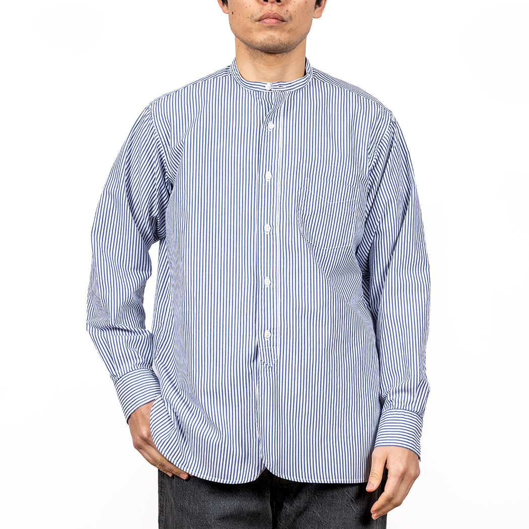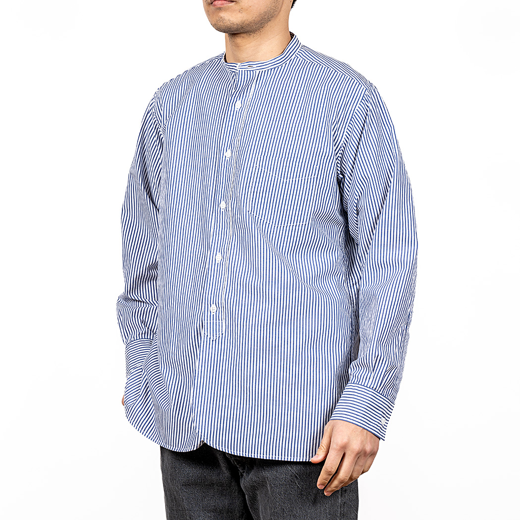 Band Collar Shirt, Stripe Poplin |