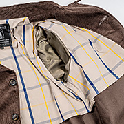 後から「太畝にしたほうが売れただろうな」と思いつつ、私には太畝はもう少し古い年代のハンティングのイメージ。フォレスティエールは、他に選んだネイビーのバーバリークロスもそうで、どこかそっけない。普通の生地がイメージなのです。 |