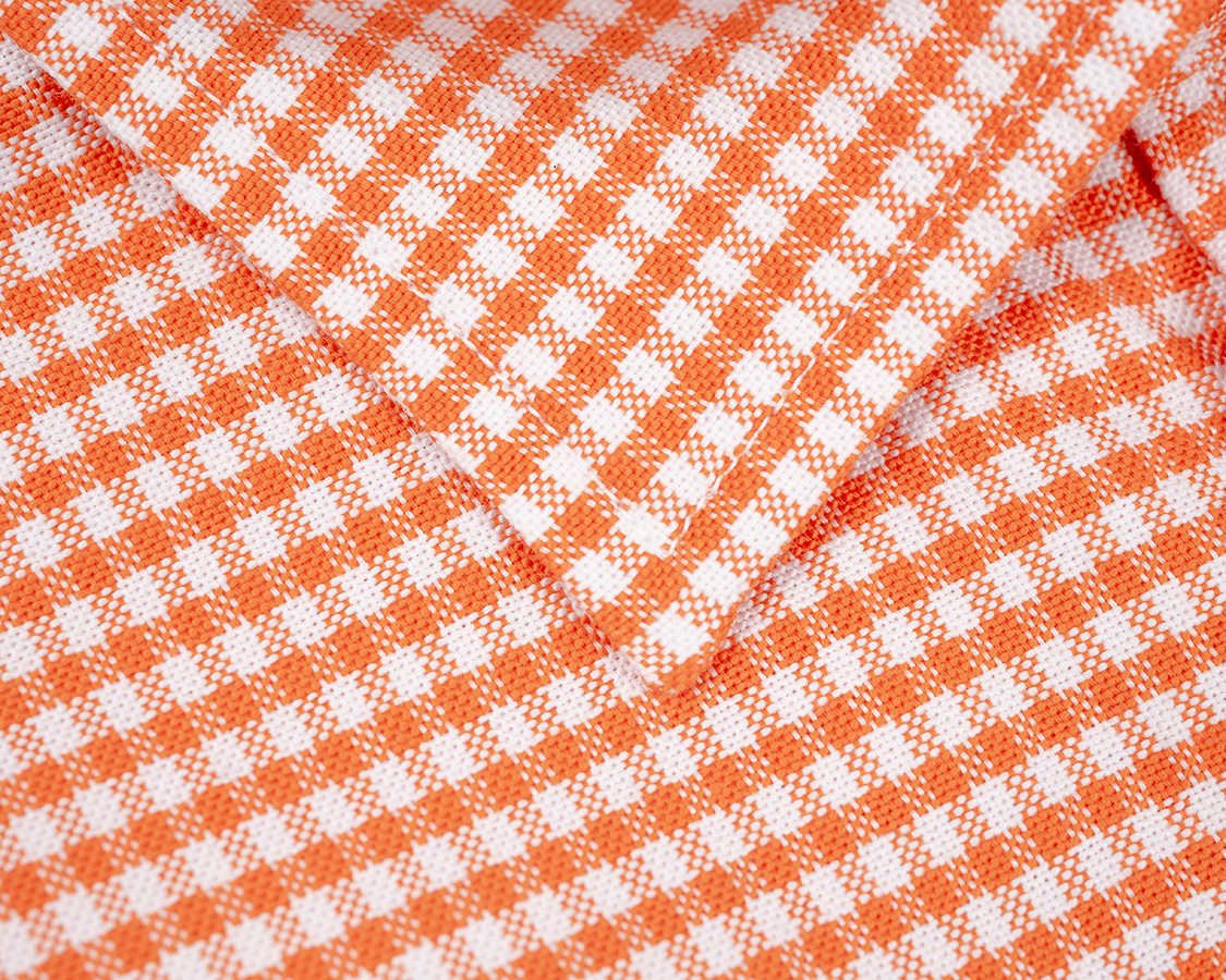 素材のアップで生地の手触りが想像できるでしょうか?ピケはタテ・ヨコの糸の織り目に隙間があるのがわかります。だから薄くて涼しいのです。