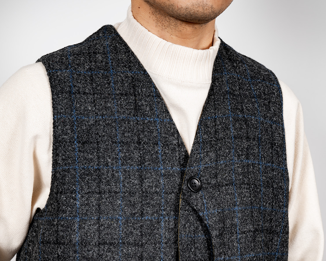 Cruiser Vest, Harris Tweed, Black x Blue |