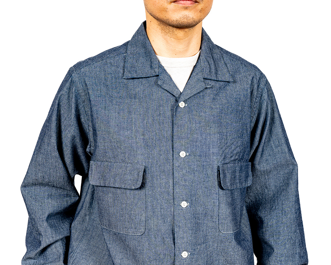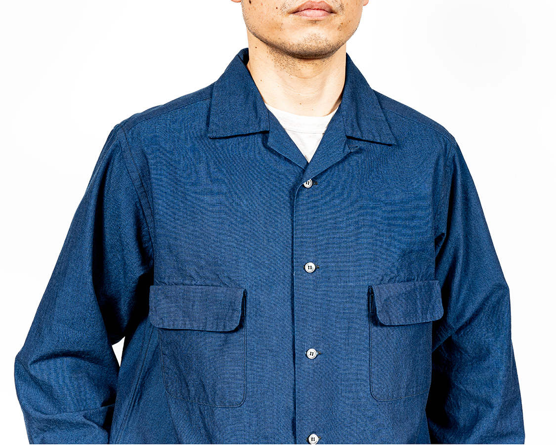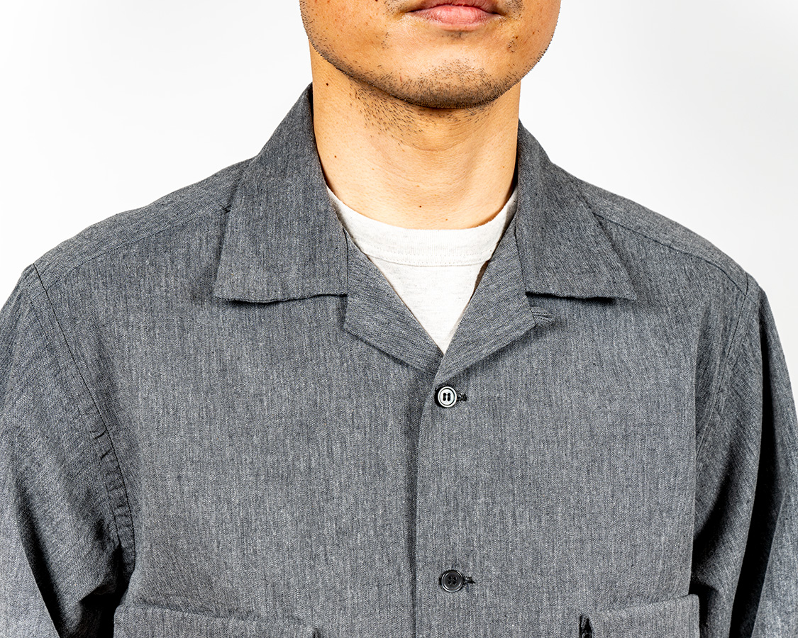 開きすぎると着づらい、かといってボタンが上すぎるとオープンカラー感が無い。ネックのクリ具合とも関連しているので、単純に参考にしたオリジナルから寸法を取るのではなく、「WORKERSのシャツ型」に合わせてボタン位置を調整しました。
