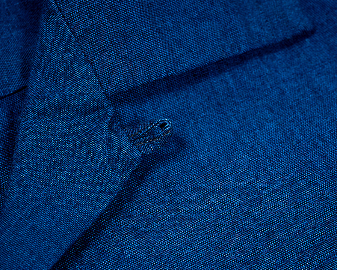 トップのループを閉じるとこんな風に襟を閉じることが出来ます。ただ、見返しを止める肩ステッチがちらっと見えるので、あまりお勧めではない着方。