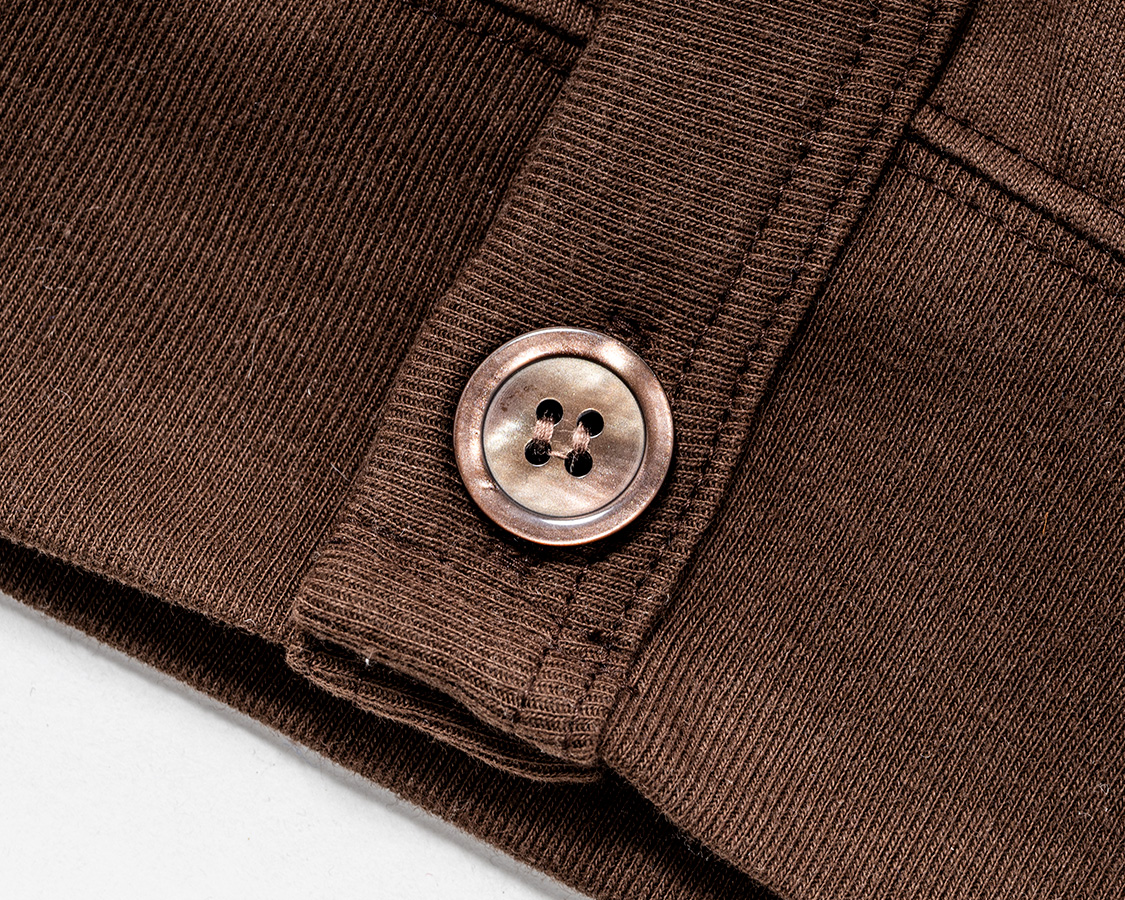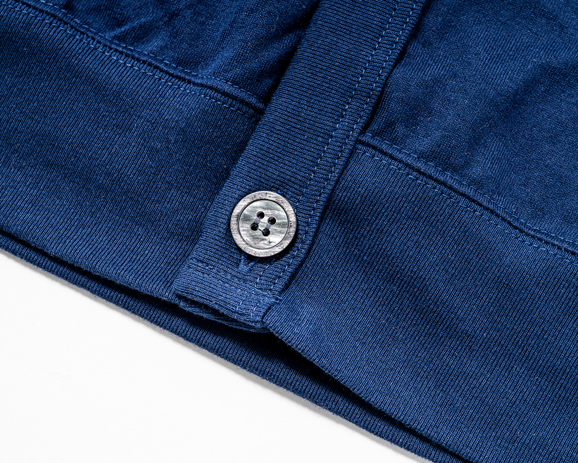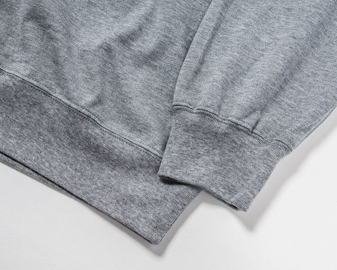 袖口リブは「きつすぎない、ゆるすぎない」寸法に調節。身頃の袖口はリブより大きいので、リブに対して伸ばしながらつける。それが、シャーリングのような皺になっています。