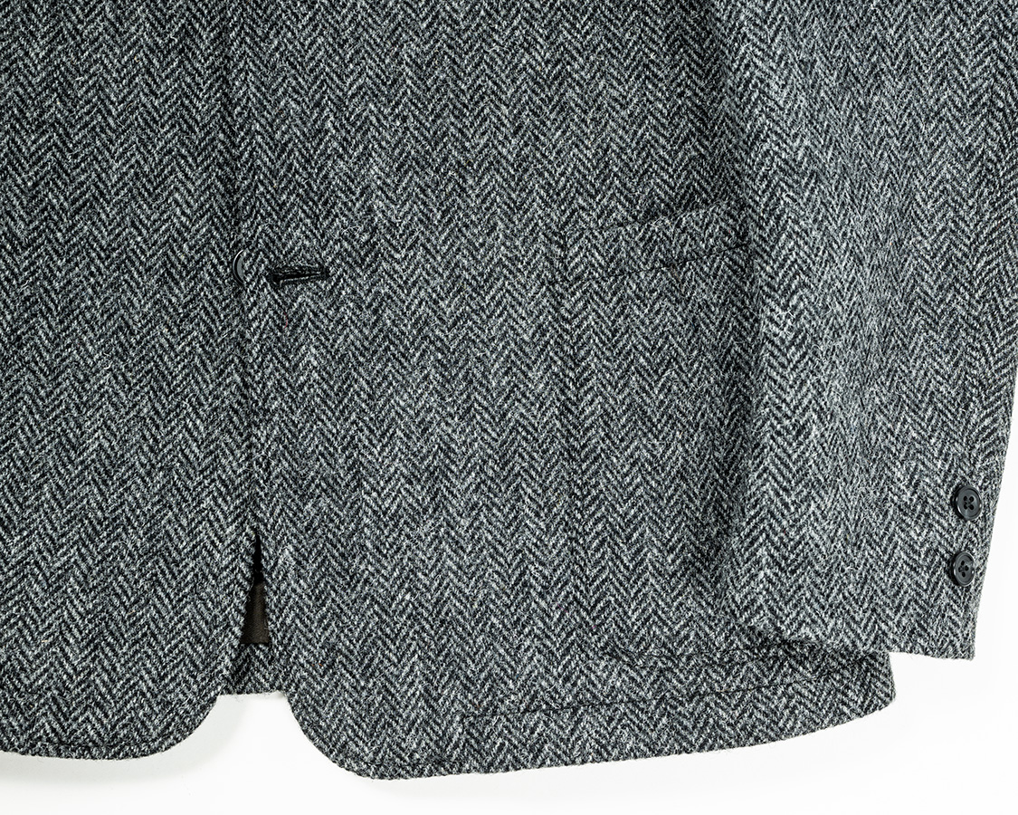 短めの着丈。カッタウェイは少なく、直線的な前端の角を落としたライン。