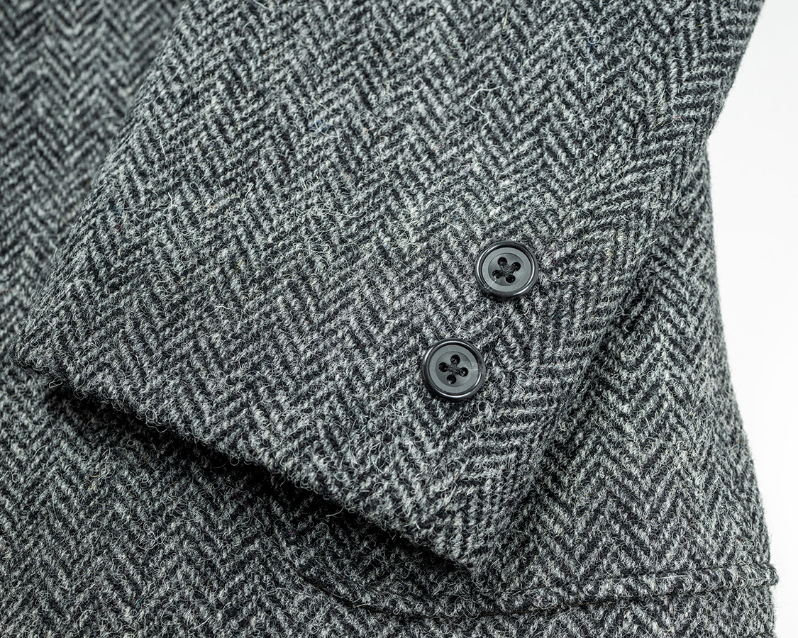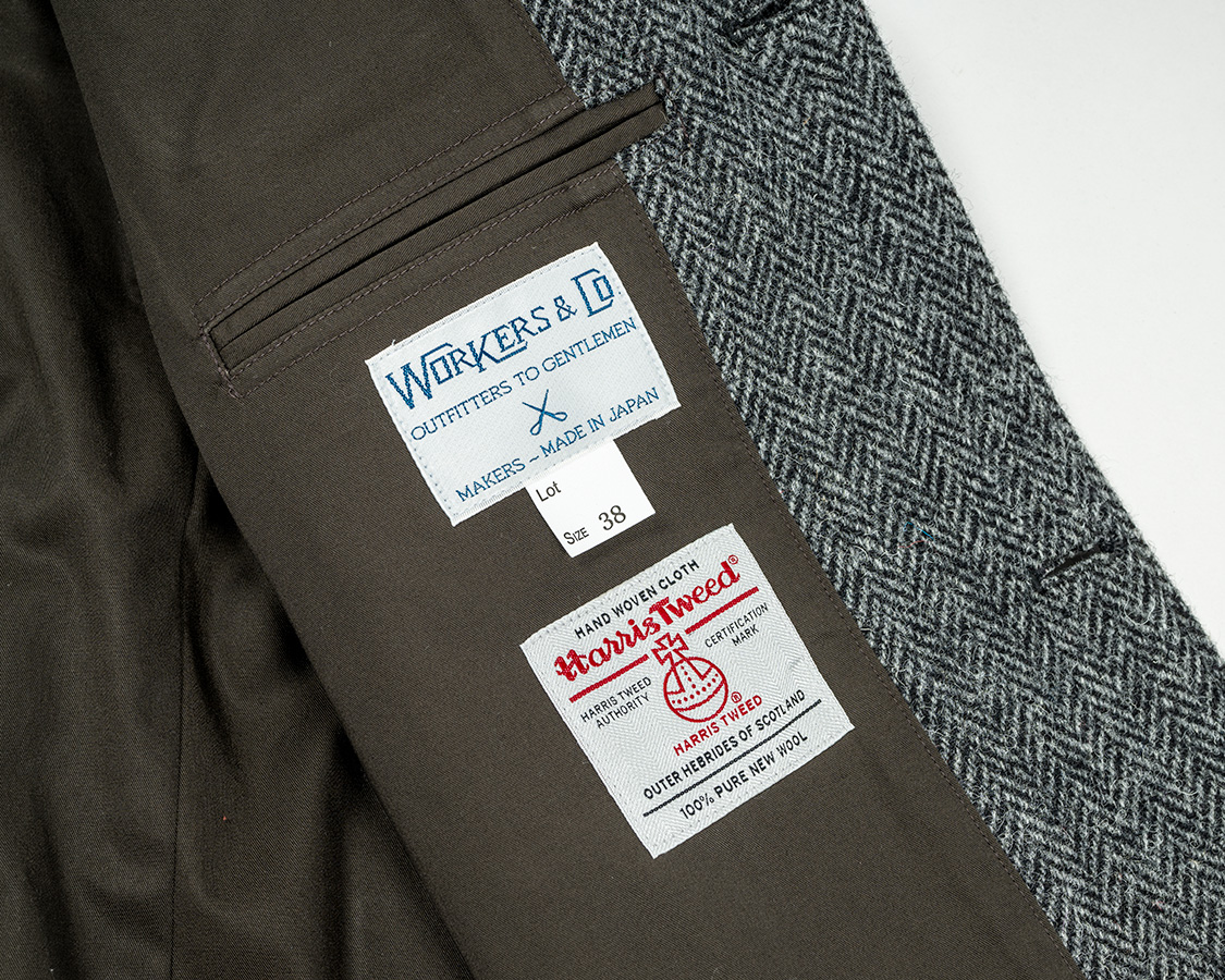 左右、両玉縁の内ポケット。グレーのツイードはハリスツイードネーム。