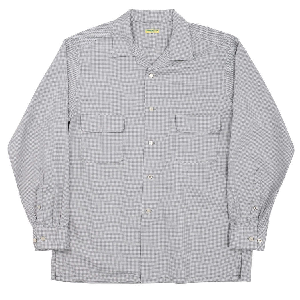 元ネタはかつてフランスで一世を風靡した(らしい)お店の長袖オープンカラーシャツ。古着で千鳥の一枚を見つけて着たかったのですが私にはサイズが合わない。ということで作りました。