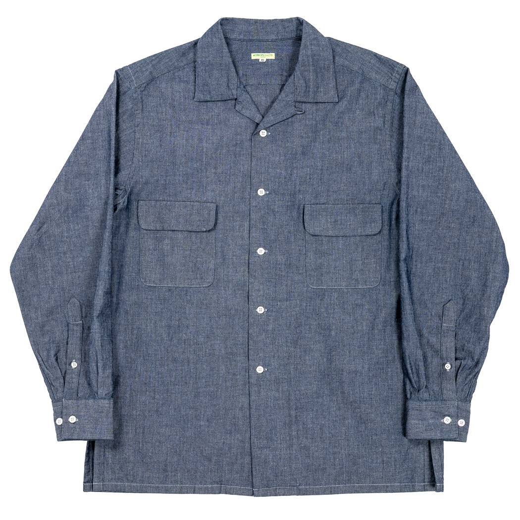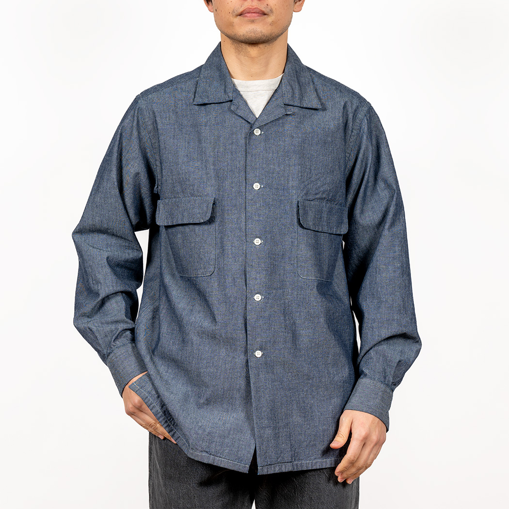 品名 Open Collar Shirt, Blue Chambray