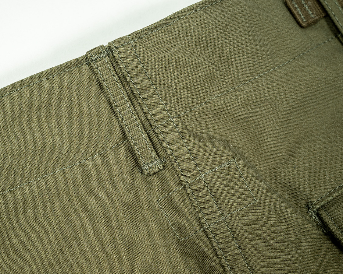 WORKERS支給のミシンで縫う細ループ、これもまた、トラウザーズ「らしさ」を感じる部分。軍パンはどこか、ジーンズやワークパンツと違う「トラウザーズらしさ」があると私は感じます。