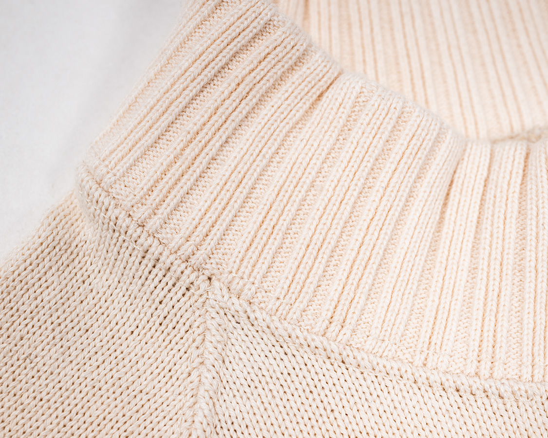 クルーネックよりちょと高い、でもモックネックよりは低い。この絶妙な高さが、Raglan Cotton Sweaterが指示される理由でしょう。