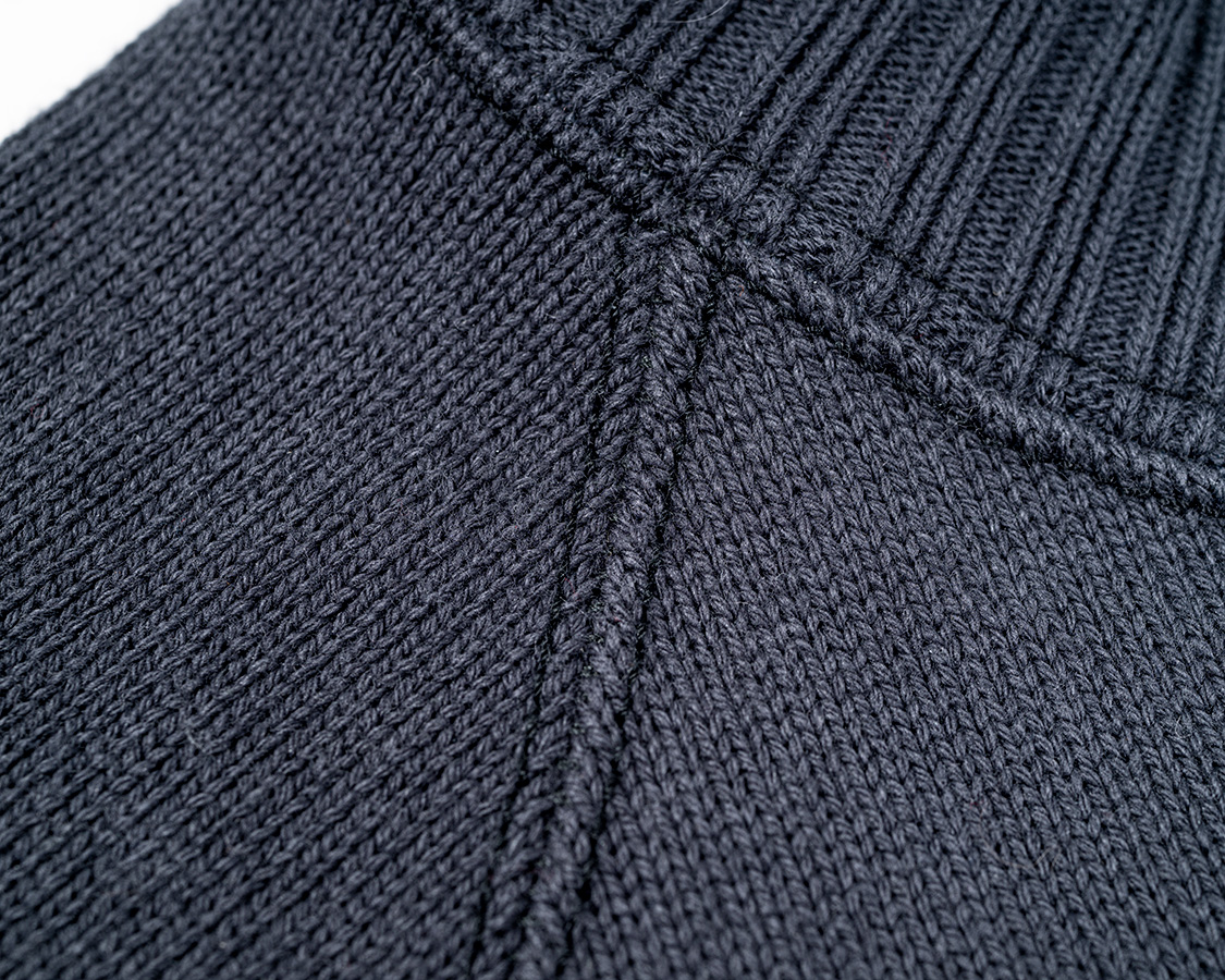 わかりづらいですが、首回り・袖の縫い目、どちらも通称「マタギ」と呼ばれるステッチが入っています。