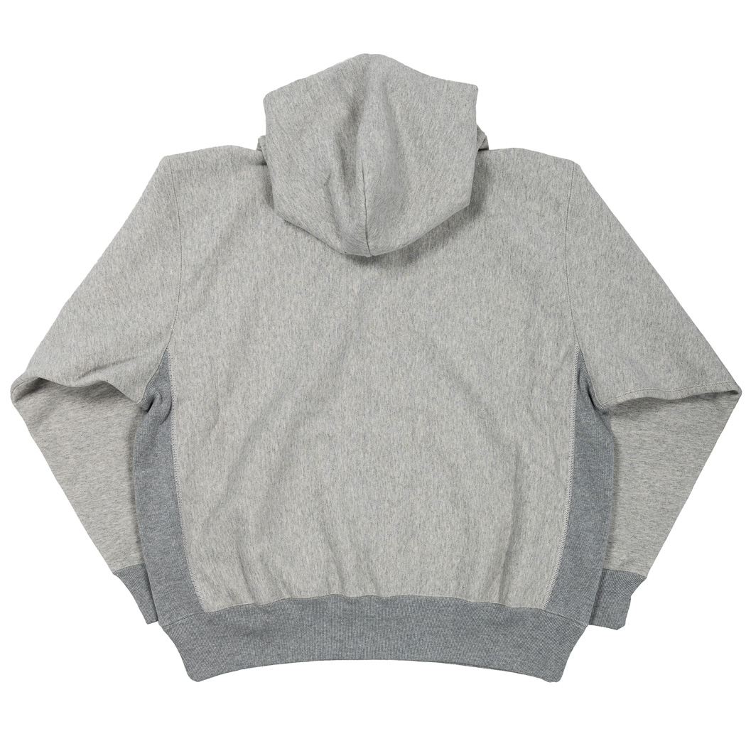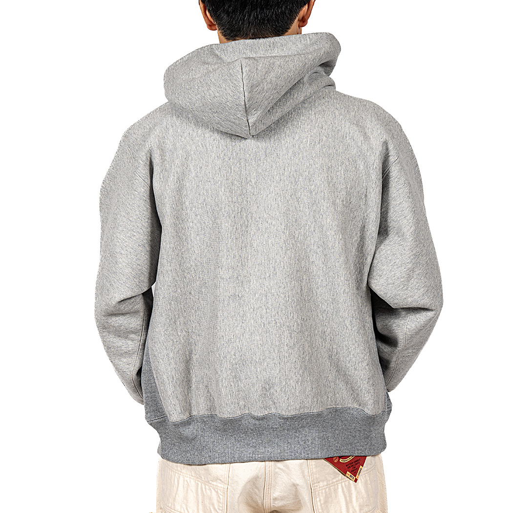 身頃はヨコ取りしたトリコタグのクルー/ パーカーが元ネタ。いわゆるリバースタイプ。