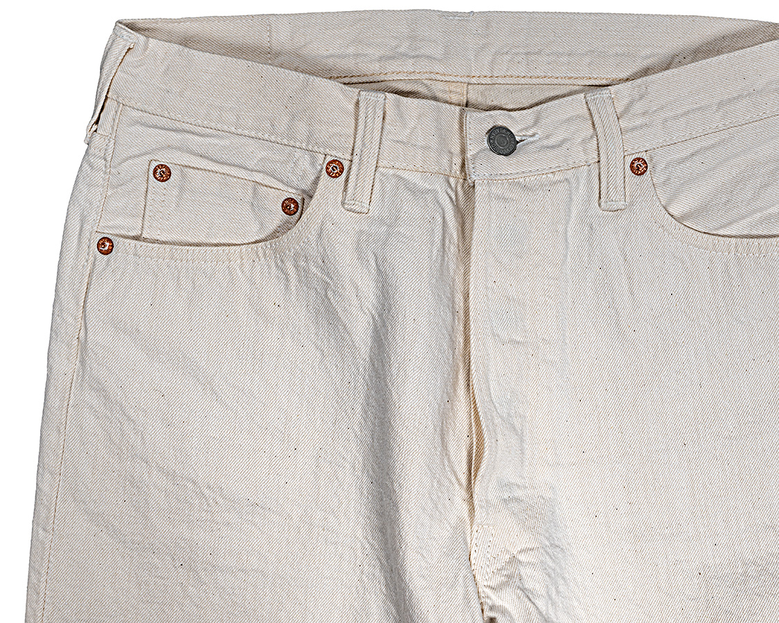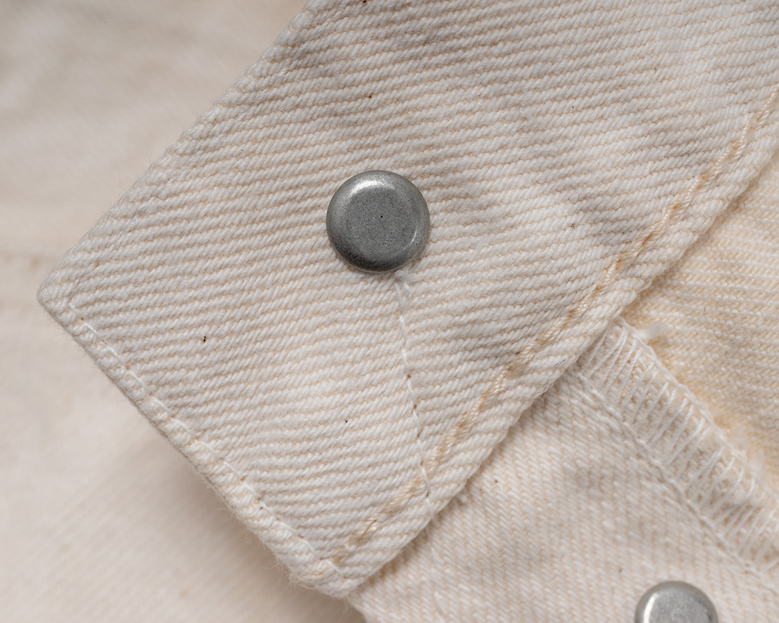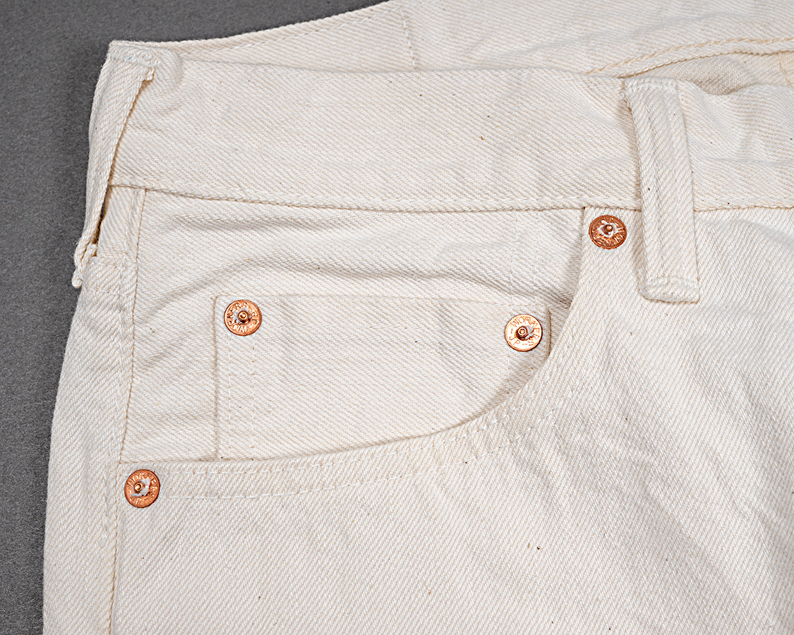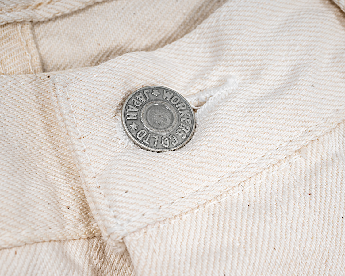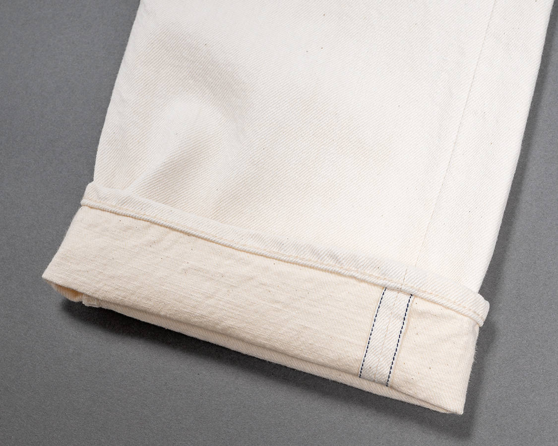 ホワイトは写真が撮りづらい!真っ白ではなく、タテは白、ヨコは生成りのホワイトデニム。