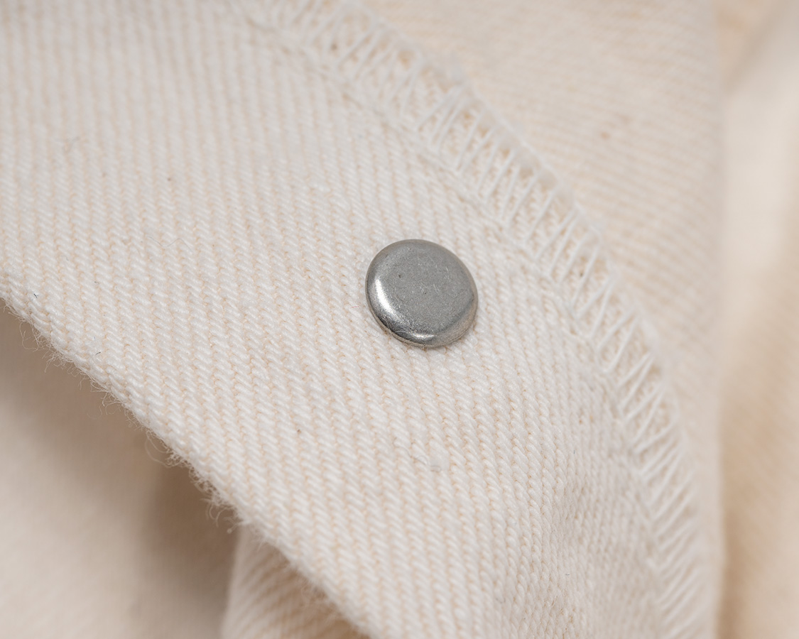ボタンの足も、トップは大き目、ヒヨクは小さめを作ってみました。ビンテージでこんな仕様がある「らしい」です。