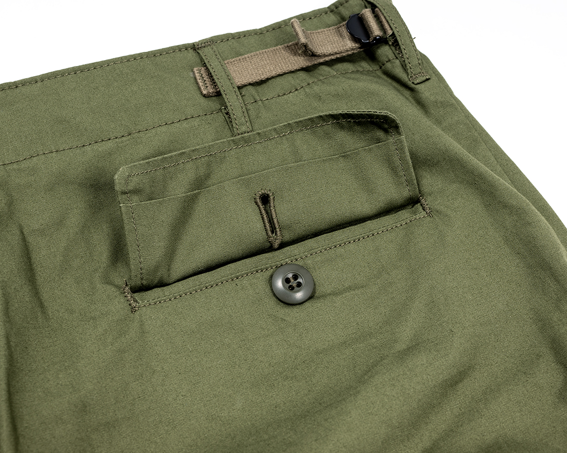 後ろ側。ポケットに向かって一本ダーツあり、倒しのステッチは無し。