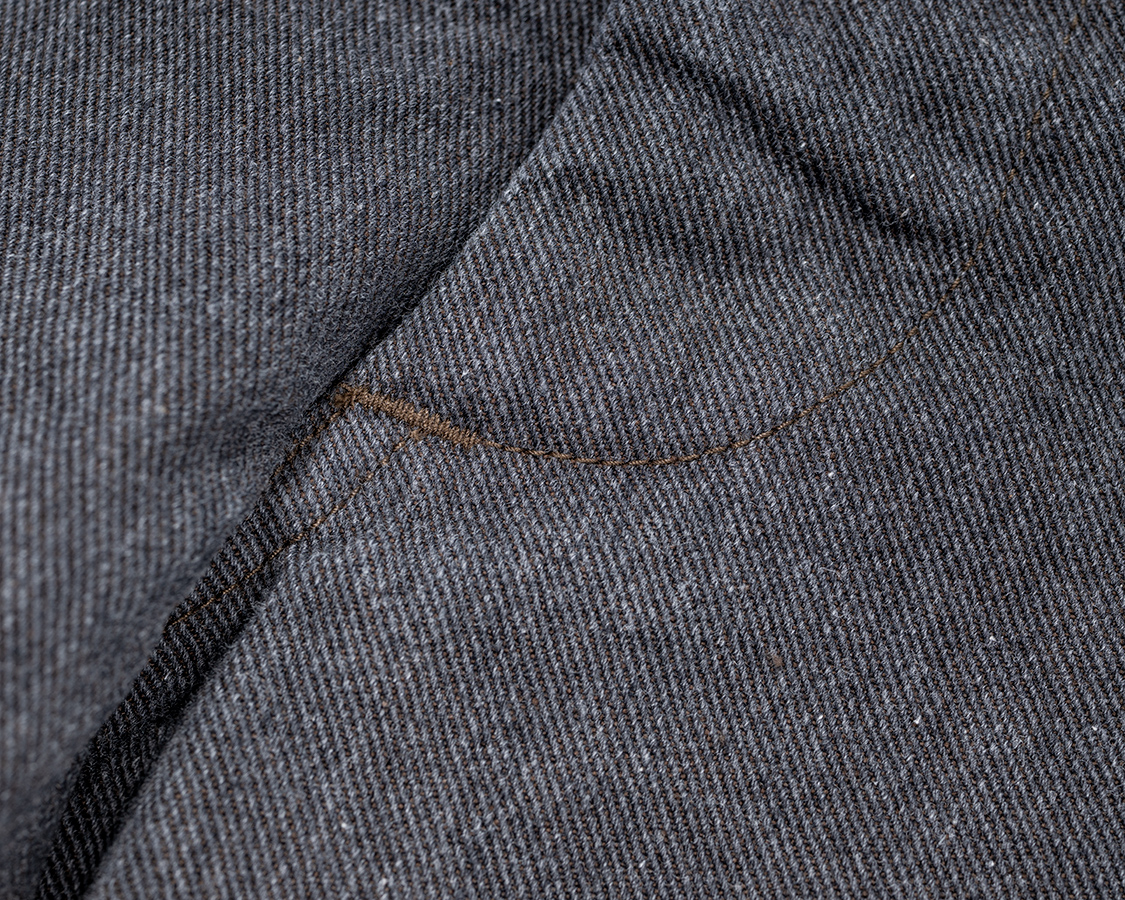 ここはビンテージで見つけて真似するようになった、「小股」のダブルステッチ。チノパンはここにステッチ無しが多いのですが、何本も見ているうちに入ってるものも見つけました。入った方が強度的には絶対強い。でも、「原理主義」的に「古着でないんだから入れたら偽物だ!!!」ぐらいに若いときは思っていました。