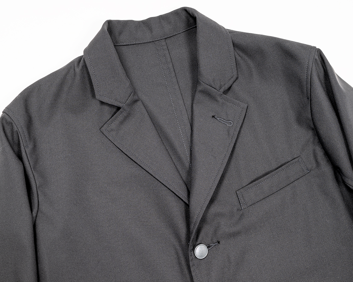 ネイビーは昨年から継続。皺になりづらい、強度がある、コーデュラナイロンを混紡したコンバットウールトロピカル。ボタンを昨年のメタルから練ボタンに変更。
