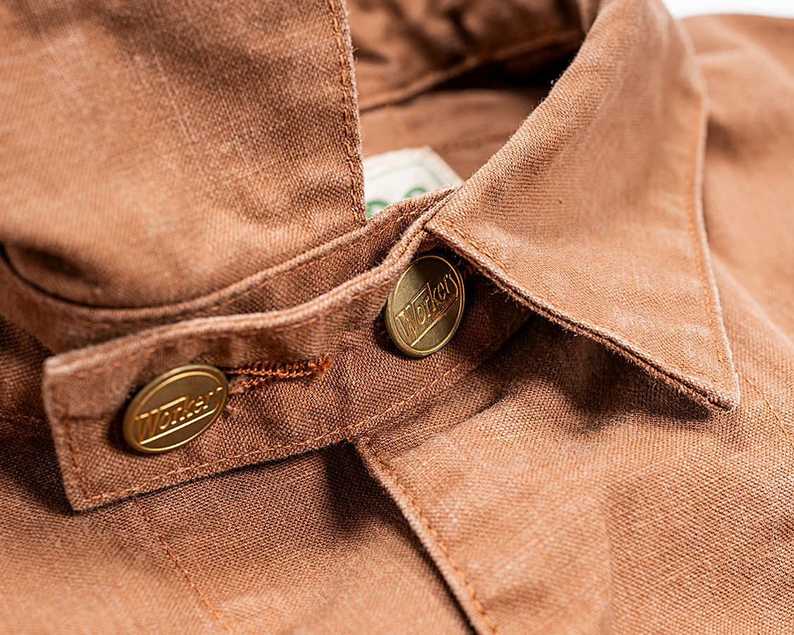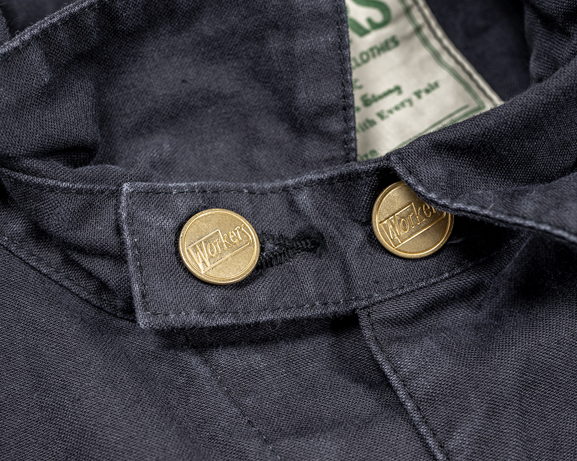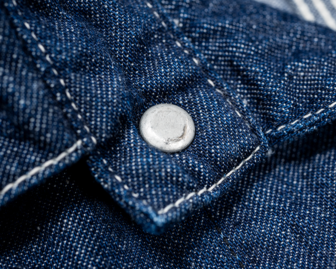 ふる~いカバーオールといえばのチンスト仕様。私は、この台襟二個ともボタンを閉めて撮るのが好き。なんとも豪華、いかにもワークウェア。