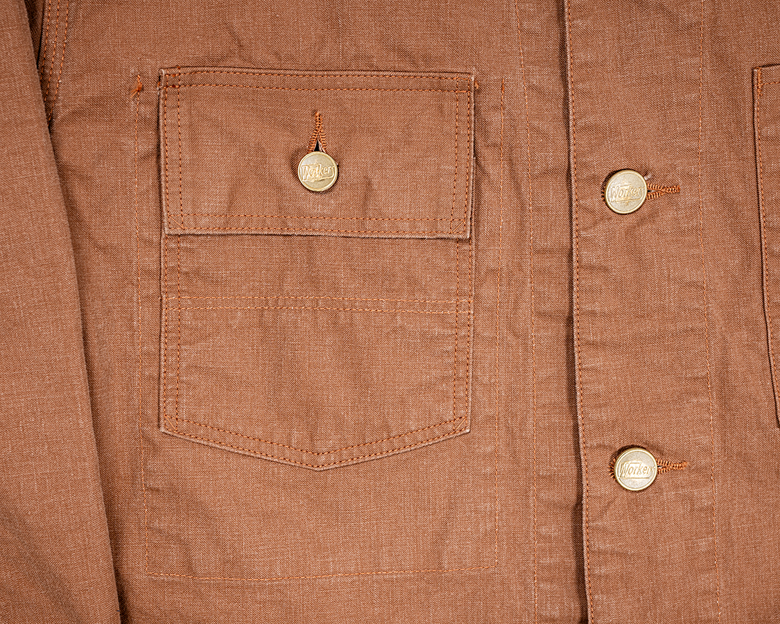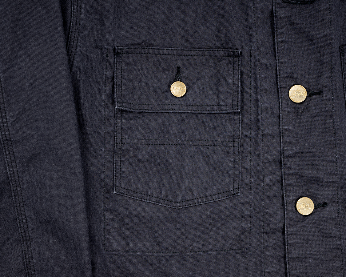 胸ポケとフロントのボタンは一回り大きさが違う。このあたりも、昔の豪華仕様カバーオール。