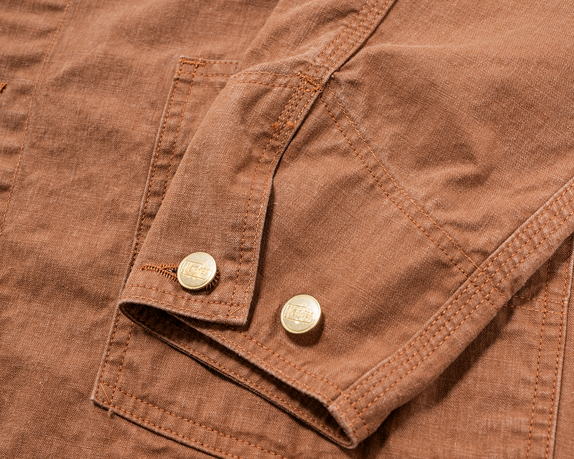 もっと前中心側に持ってくることもできるのですが、なぜか古いカバーオールはこんな感じで左右についていることが多い。確かに、左右に寄せた方が手は入れやすいか?