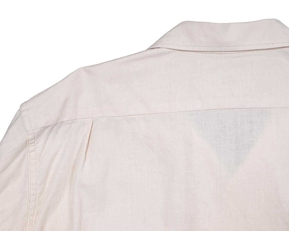 Open Collar Shirt, Ecru Linen Cotton |