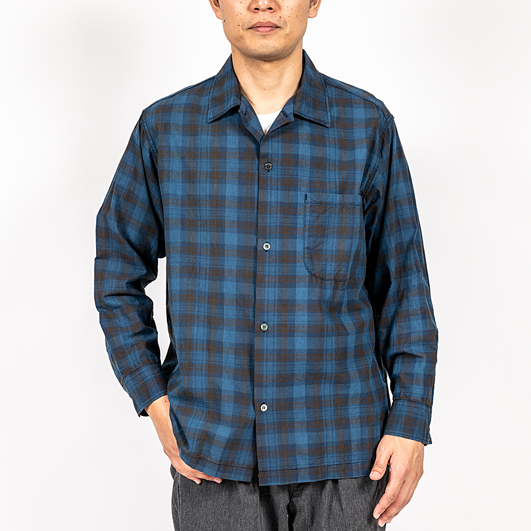 Open Collar Shirt, Indigo Madras