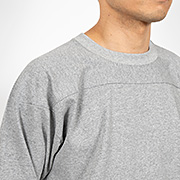 素材は16番単糸の天竺。7オンスなので、2PLYの5.7オンスより厚い、重い。ガサっとして固めの風合い。