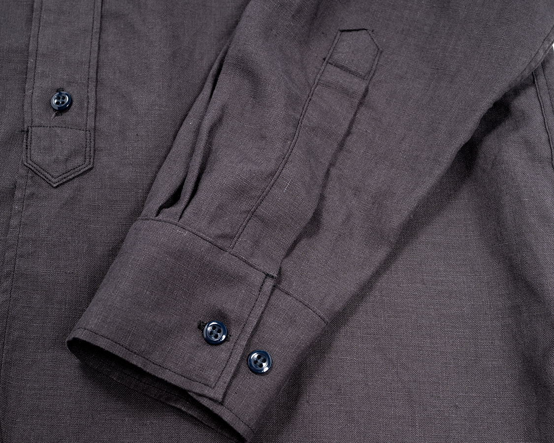 | Band Collar Shirt, Black Linen |