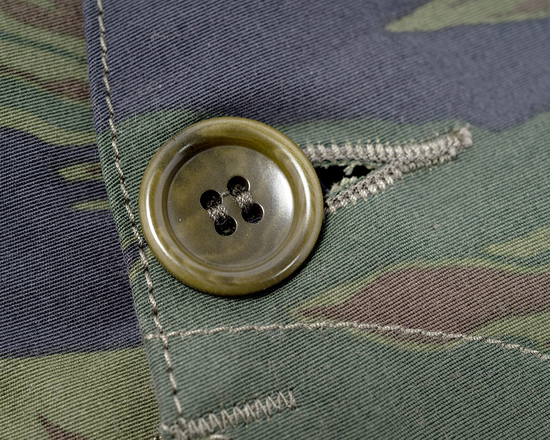 ボタンはコロゾ椰子を染めたボタン。薄色に染めたものは、素材のマーブル模様が出ています。