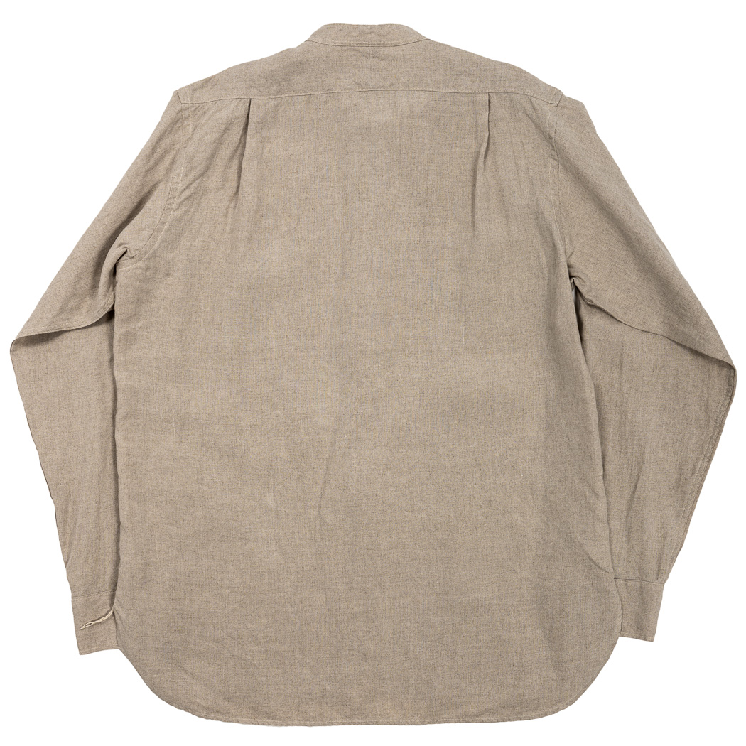 Band Collar Shirt。「いつかリネンの生地でも作ってほしい」と北海道のKSKさんからメールを覚えていて作りました。が、作っている最中「来年からリネン大幅値上がりします」と生地屋さんから連絡が来て頭を抱えました。が、最後の思い出でそのままサンプル作成続行。