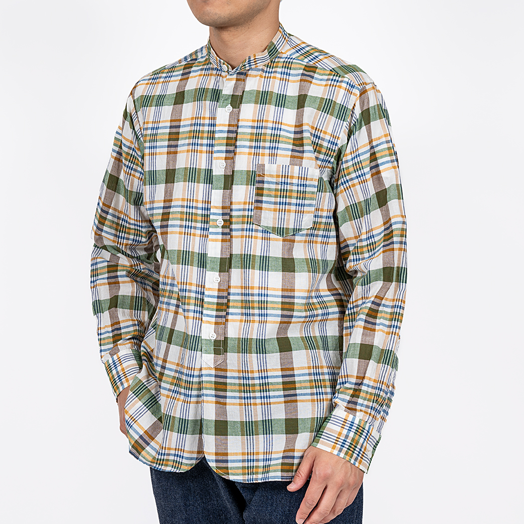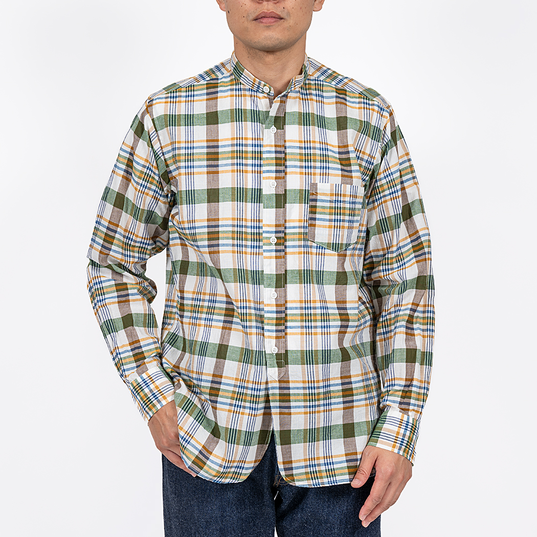 Band Collar Shirt, India Madras Blue |