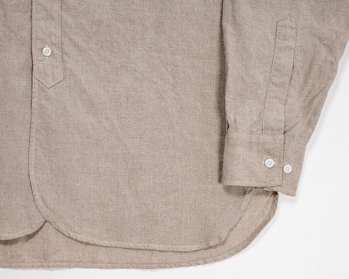 他の仕様はBand Collar Shirtそのまま。肘にゆとりがあり、ゆったりとした着心地。 |