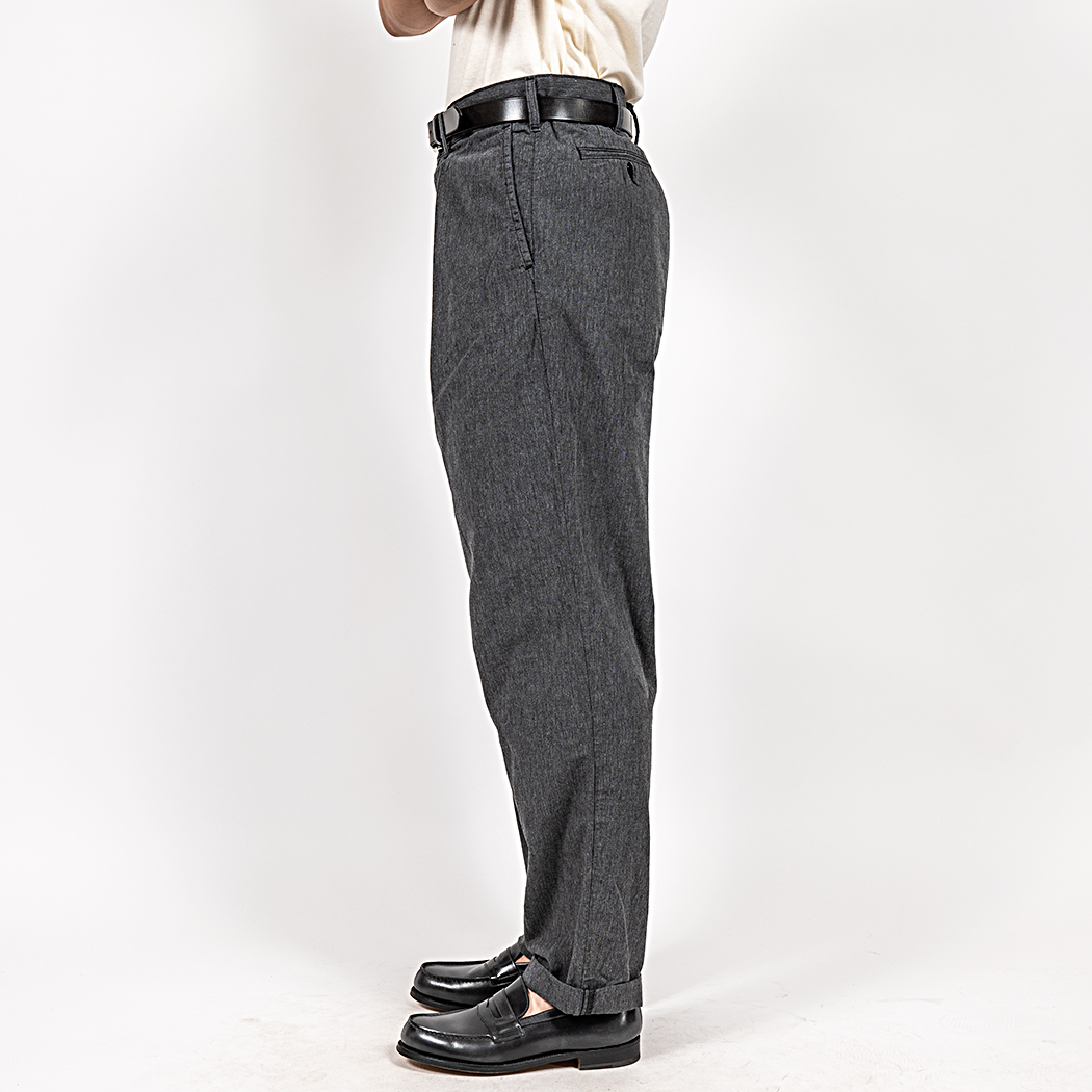 ブラックシャンブレーが一番薄い5 オンス。とにかく涼しい生地を!という方はブラックシャンブレー、一択。FWP TrousersやSummer Trousersを作りはじめたきっかけの一つがこのシャンブレー生地。