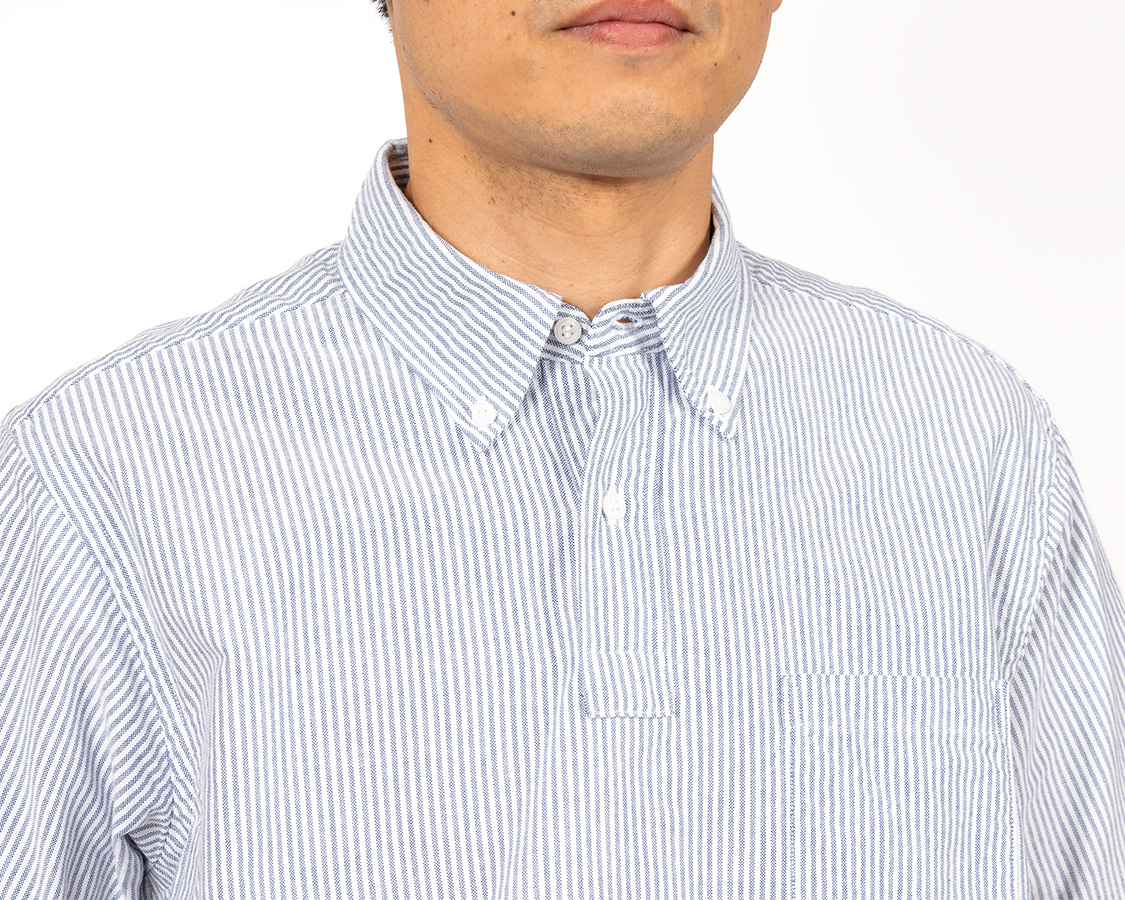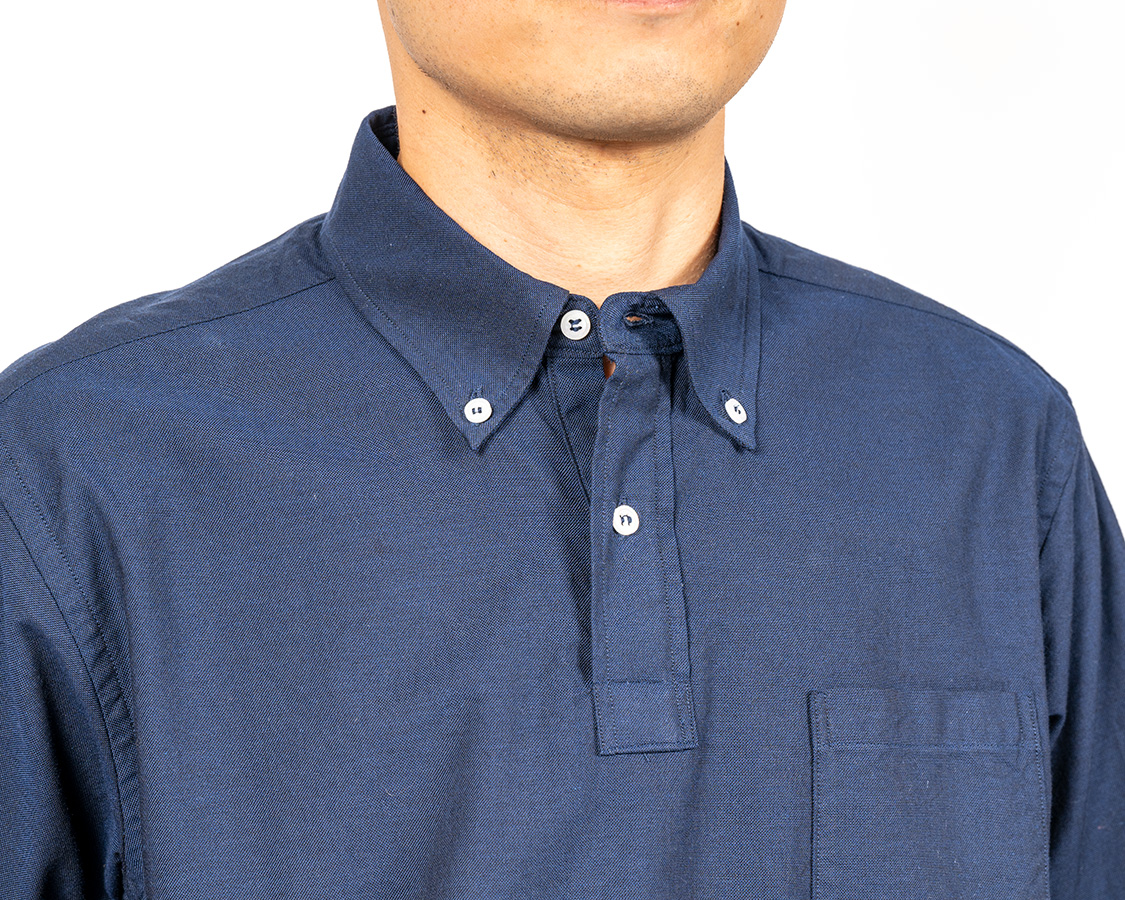 元々「ポロシャツをシャツ生地でつくったら?」で始まった企画。今年はその襟をボタンダウンに。ただ、Modified BDや6 Button BDとは違い少し小さめの襟。