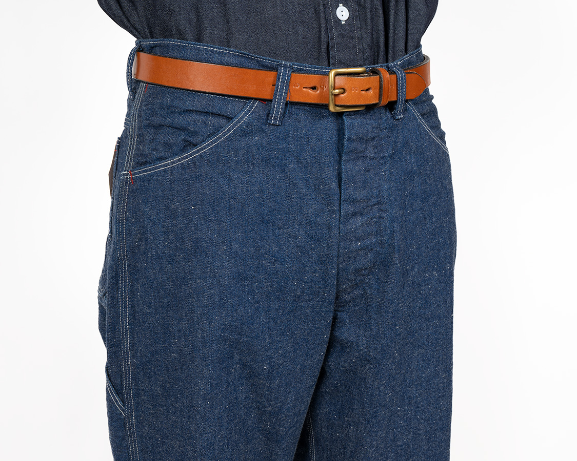 股上は33センチ程度なのである程度深い。これが昔だったら妙に浅くしてしまったりしたのでしょうが、今は「そのものらしい普通のパターン」を目指しています。ワークパンツは股上もある程度深くて、裾が太くてゆったり目が普通です。