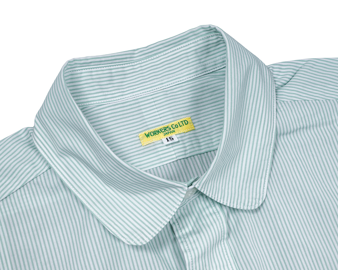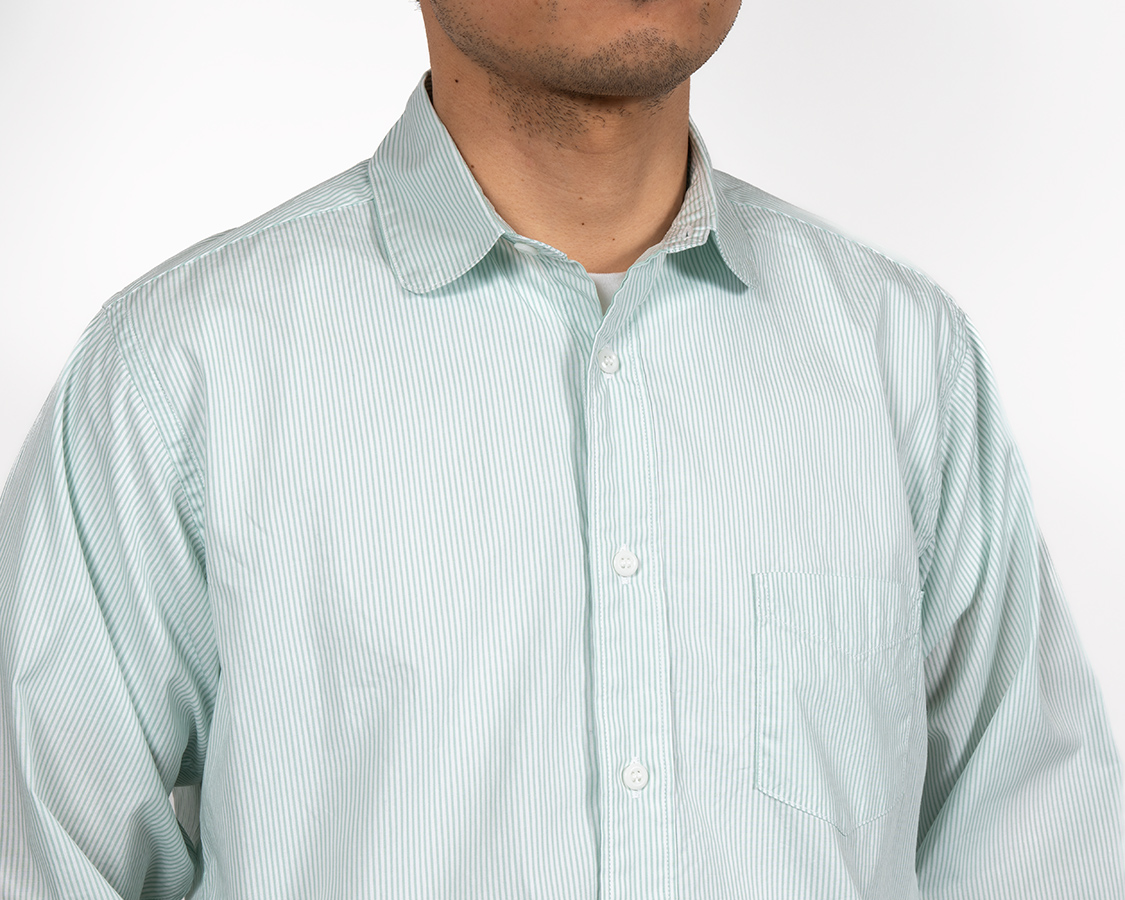 Round Collar Shirt, Green Stripe Poplin |