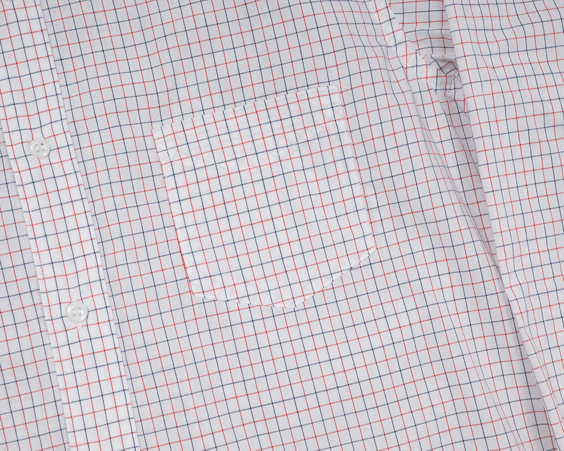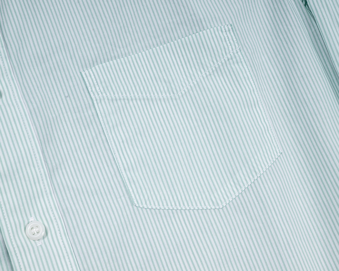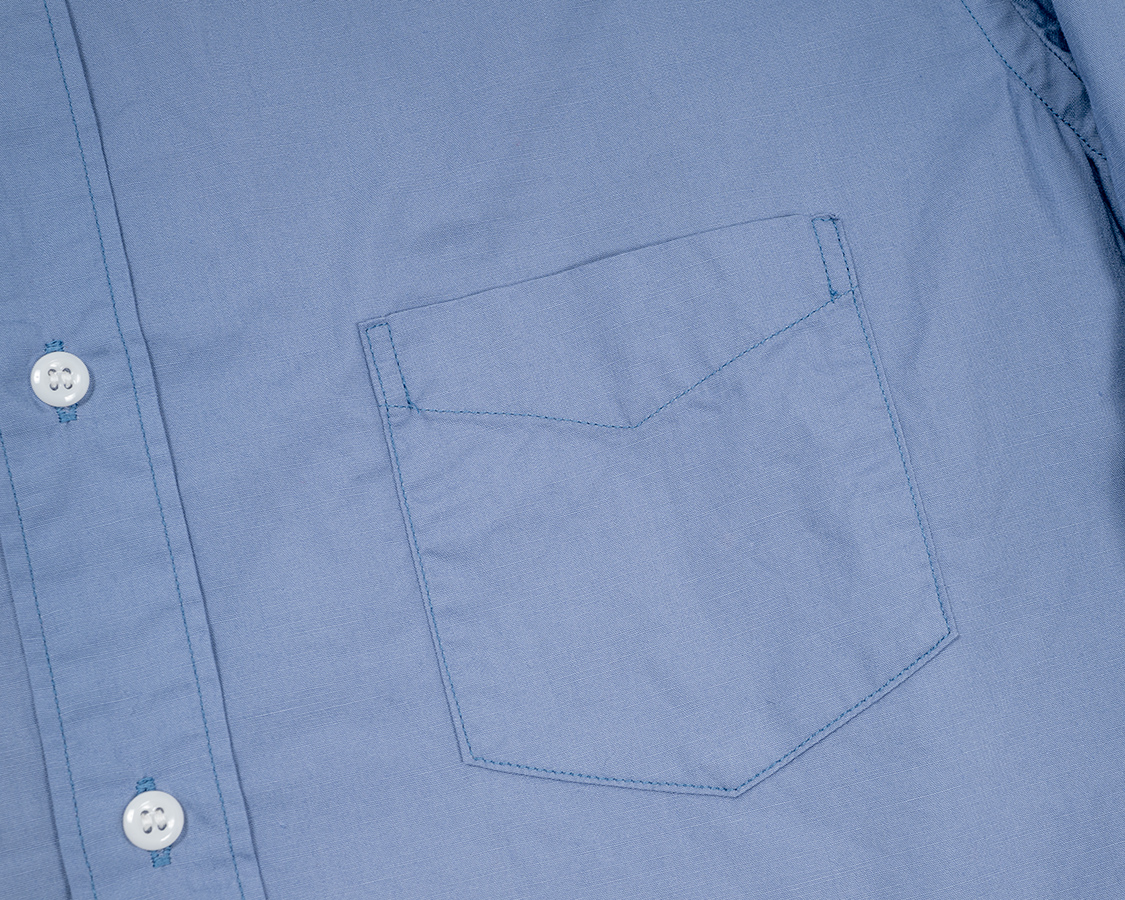 左胸ポケット。ドレスシャツ的にはポケットなしなのですが、実用性を考えて。