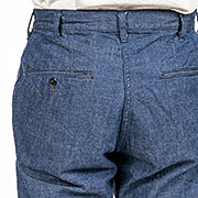 今期は真夏から履けるよう、チノ2色を8オンス程度。定番の10オンスより少し軽めの生地。8月にはセットアップのLounge Jacketもあり、そちらも8オンス。温暖化の進む日本で着やすい厚みにしています。ただ、真冬は無理です。