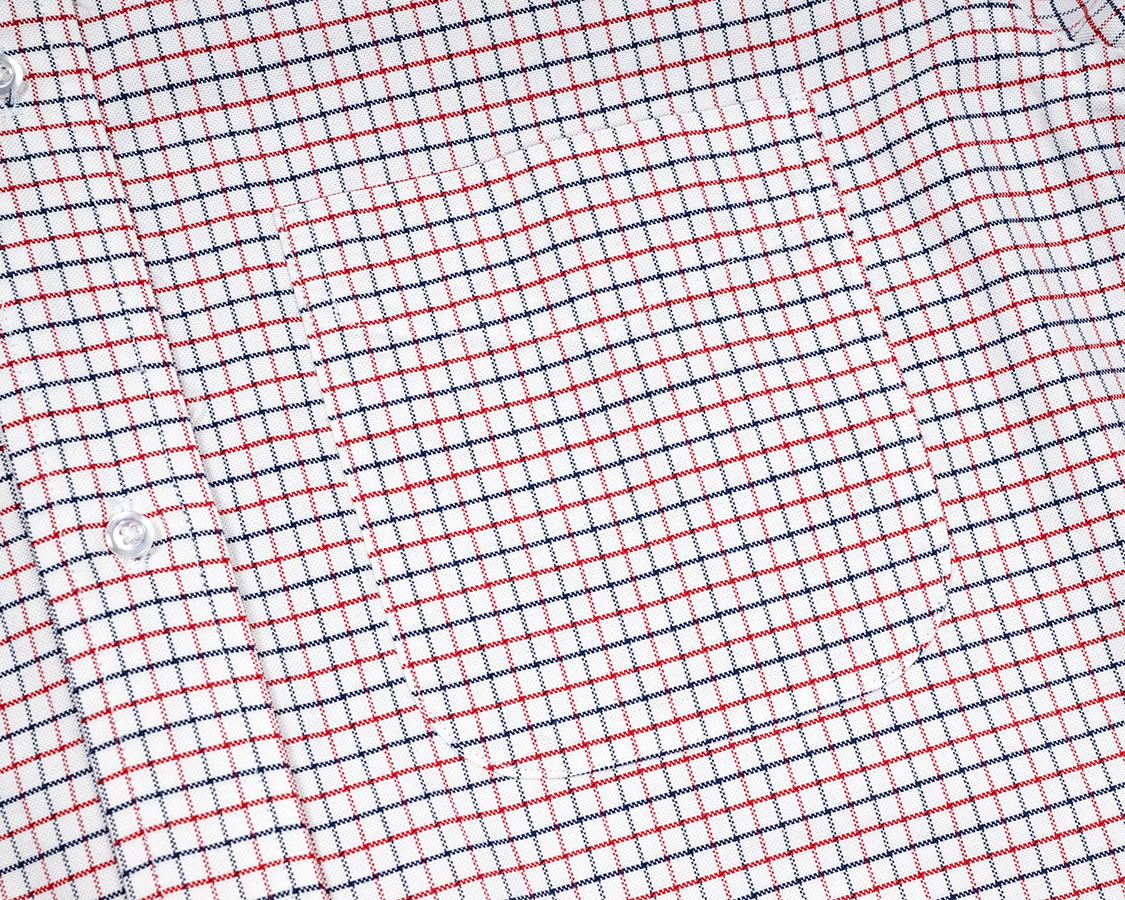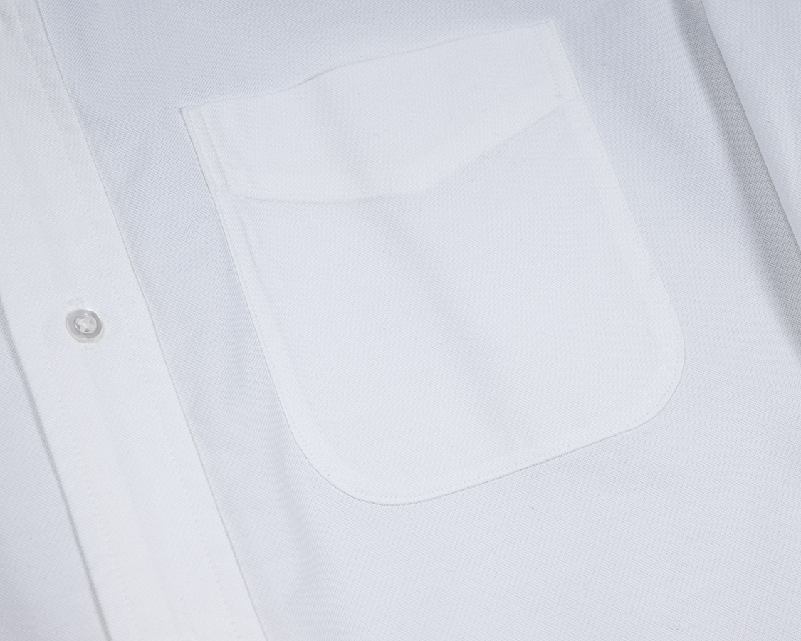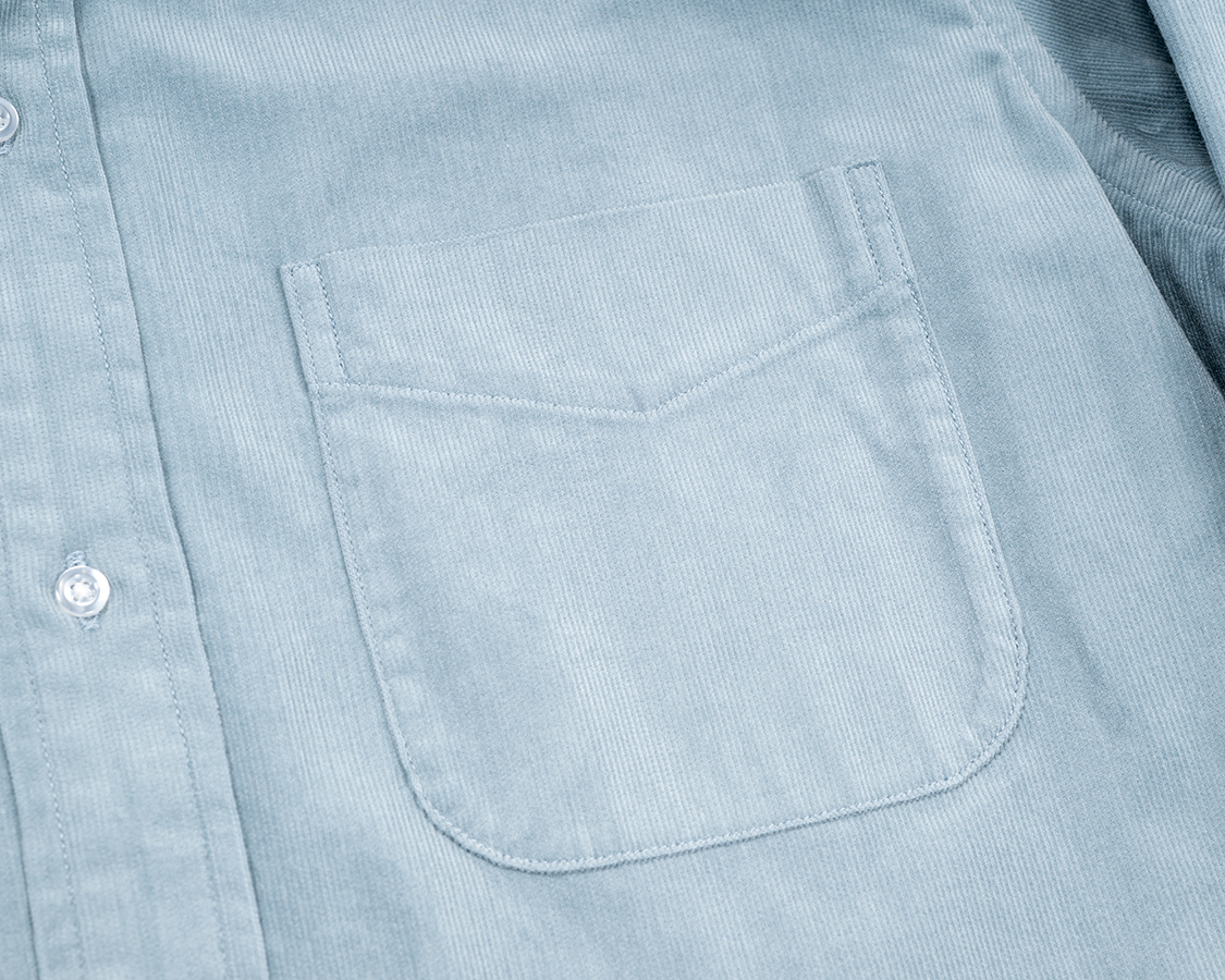 胸ポケットは樽型。下の丸みをうまくアイロンするのが難しい。Modified BDよりは少し大き目で、古着のサイズそのまま。