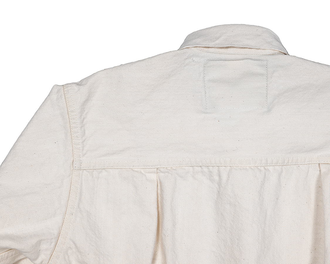 背中のヨークは広め。パッチは上気味につけています。このあたりも参考にしたオリジナルのバランス重視。